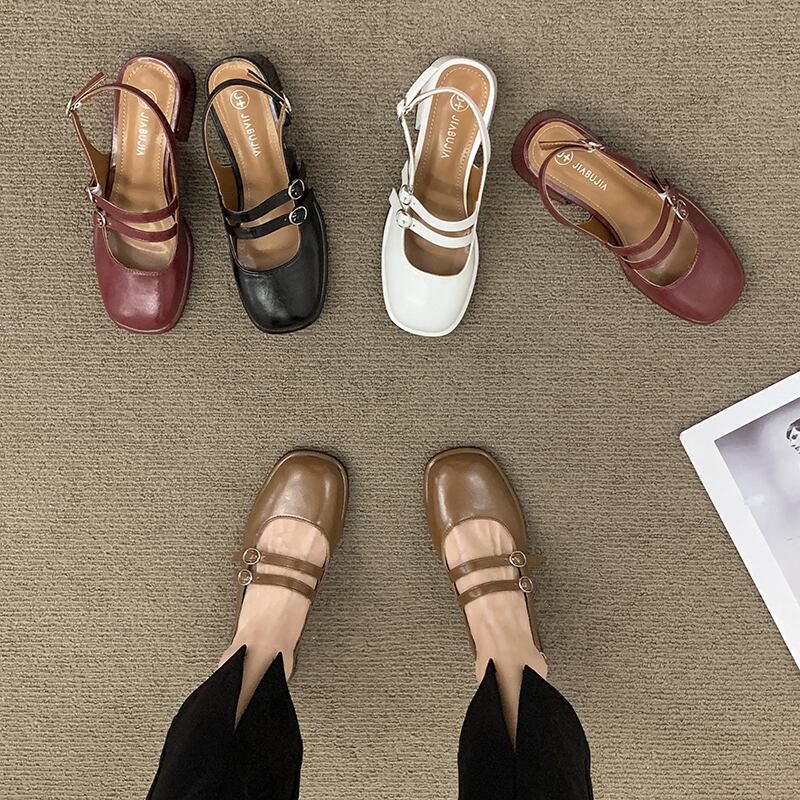 レトロバオトウサンダルレディース2022夏新ベルトバックル厚手のヒールノンスリップネットレッドファッションオールマッチスモールレザーシューズ 靴 サマー 夏物 ハーネス jxjxf64724589548
