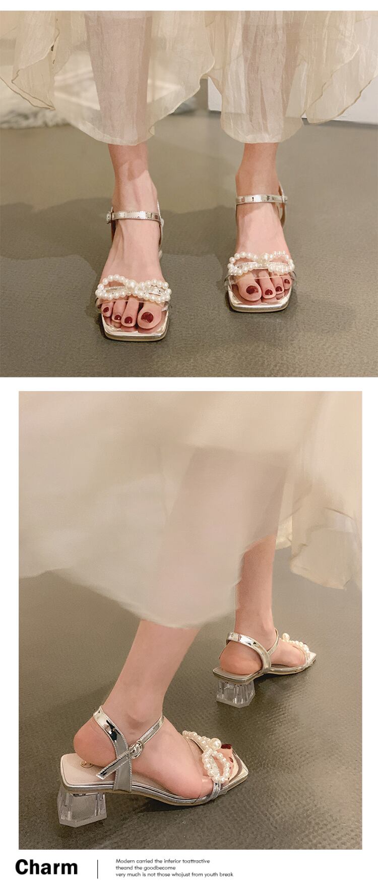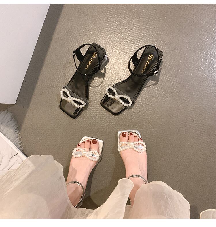 レディースシューズサンダル2022年夏の新作ファッションオールマッチパールクリスタルシックヒールノンスリップフェアリースタイルハイヒールタイド 靴 サマー 夏物 真珠 jxjxf21066719945