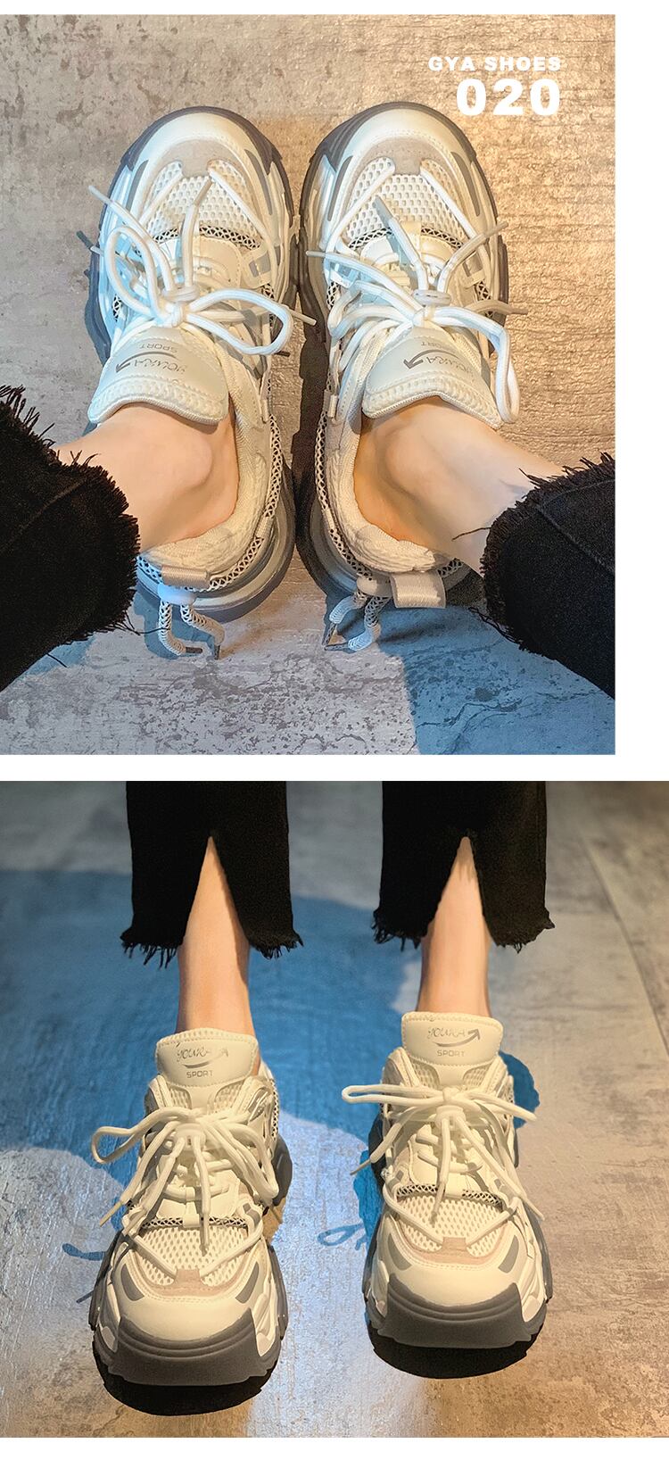 お父さんの靴女性の2022年夏新しい厚底滑り止め学生トレンドオールマッチメッシュ通気性スポーツカジュアルランニングシューズ サマー 夏物 jxjxf27228797929