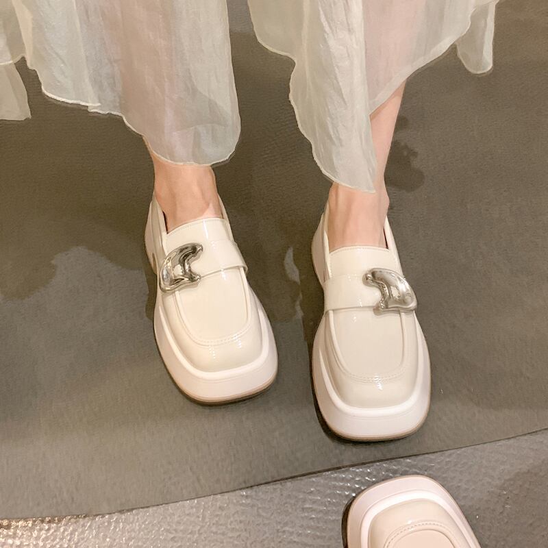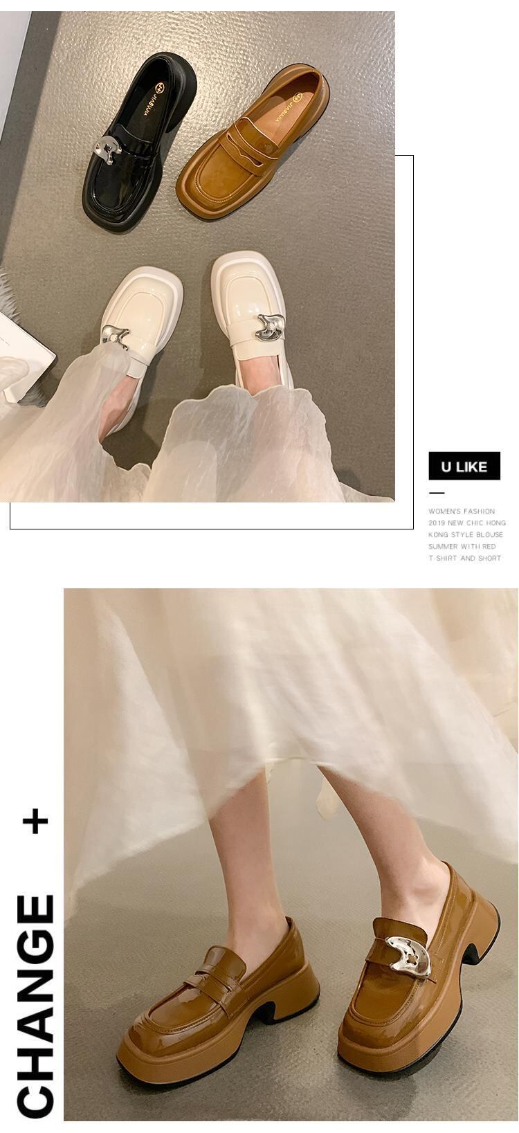 ローファーの女性の2022年夏の新しい金属の厚いかかと滑り止めネット赤のファッションオールマッチesejkレトロな小さな革の靴 シューズ レッド ヒール サマー 夏物 レザー jxjxf78836788378