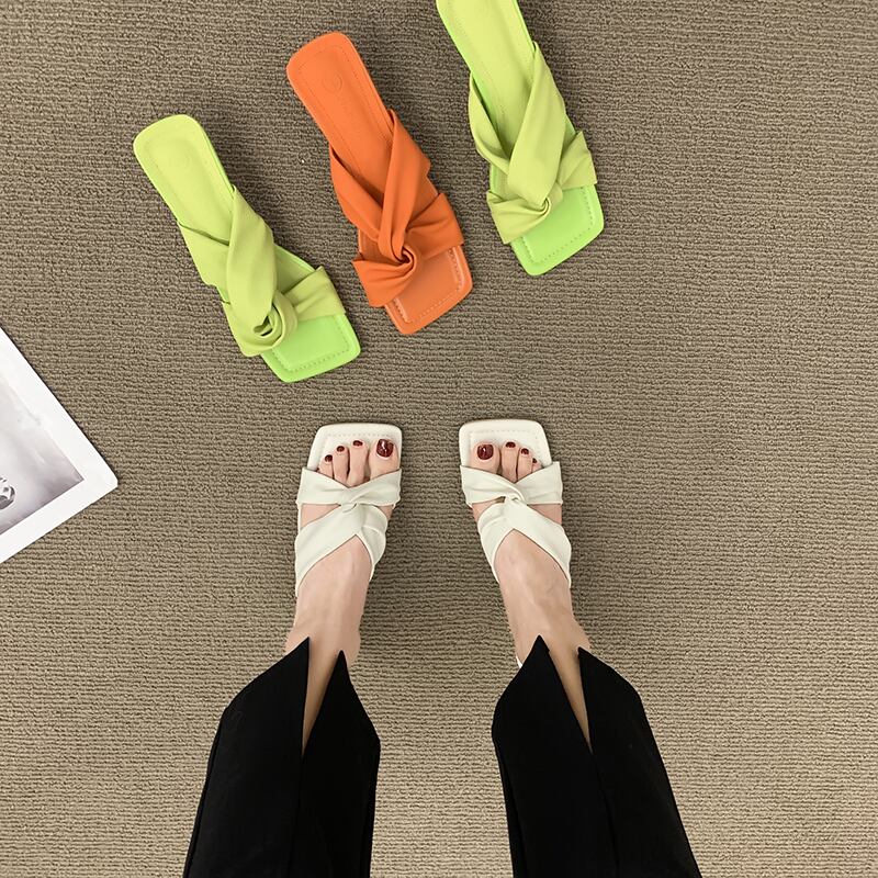 スリッパ女性の新しい2022年夏のアウターウェアファッションオールマッチクロスワンワードミドルヒール滑り止めサンダルとスリッパインタイド ミュール 靴 シューズ サマー 夏物 jxjxf7767844387