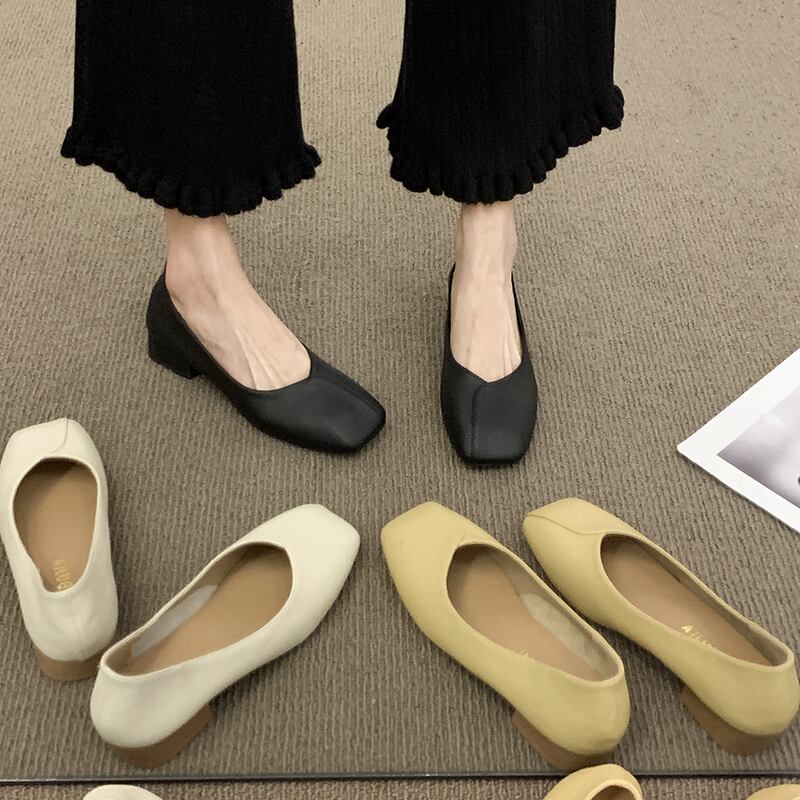 スクエアトゥシングルシューズレディース2022年夏の新しいスーパーファッションオールマッチ浅い口ローヒール滑り止めレトロおばあちゃんの靴の潮 サマー 夏物 スクウェア jxjxf57984557578