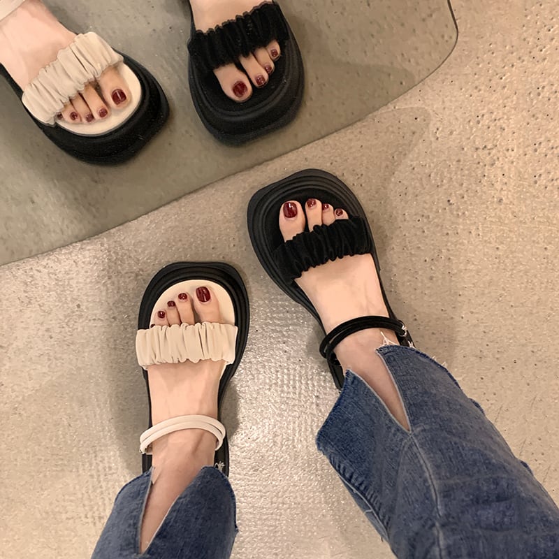 アウタースリッパ夏の女性の2022年の新しいファッションオールマッチの小さなシンプルな厚いヒール滑り止めの2着のサンダルとスリッパ ミュール 靴 シューズ サマー 夏物 jxjxf91827319415