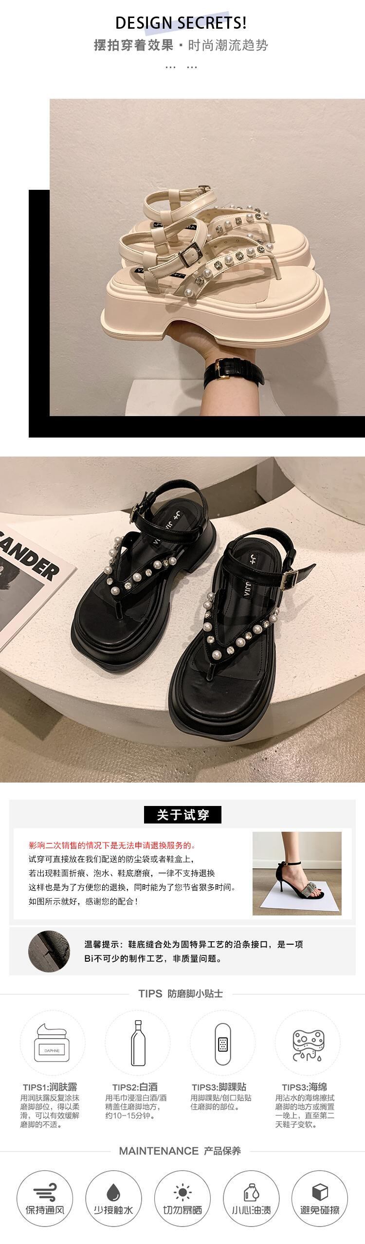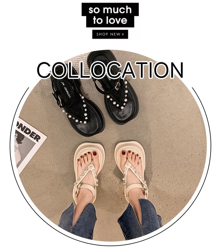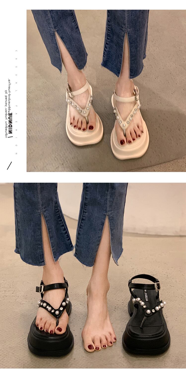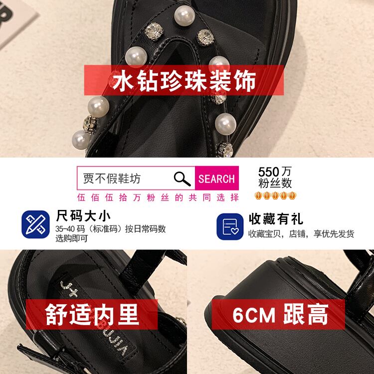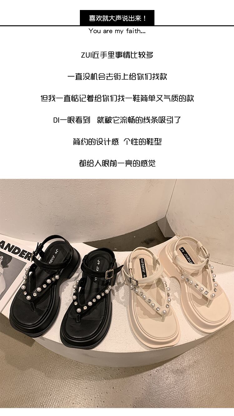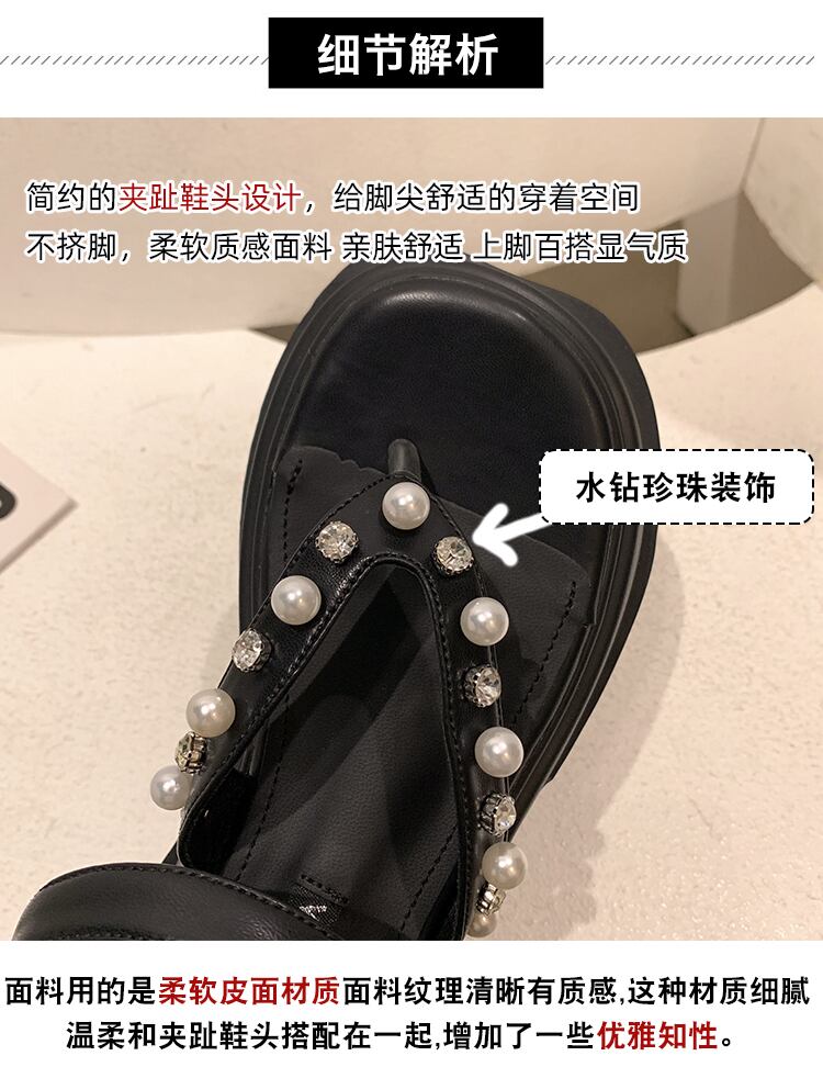 トンサンダルレディース2022夏の新しいファッションオールマッチアインスタイルラインストーンパール厚いヒール滑り止めビーチシューズ潮 靴 サマー 夏物 真珠 jxjxf73628964492