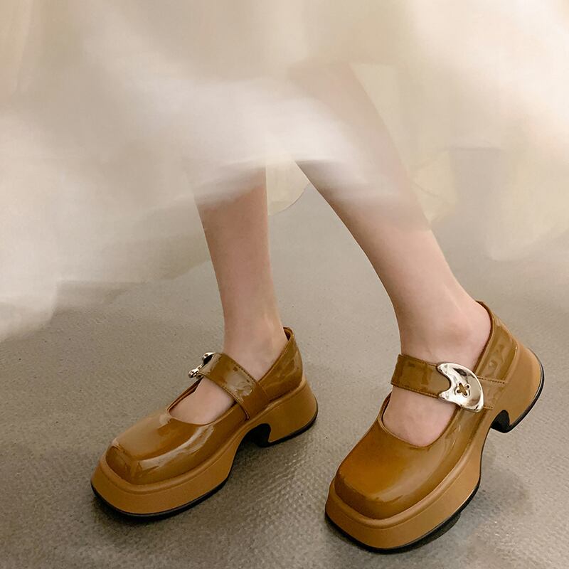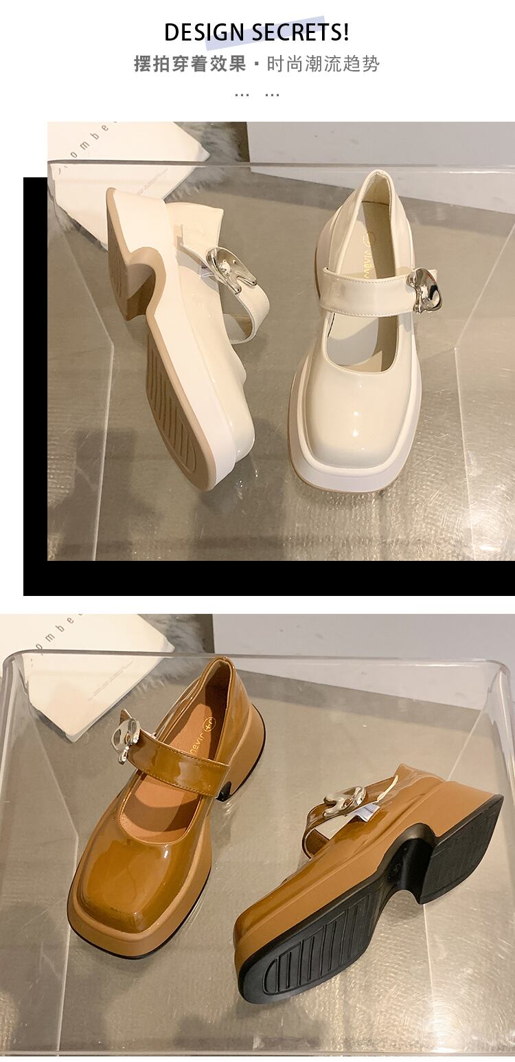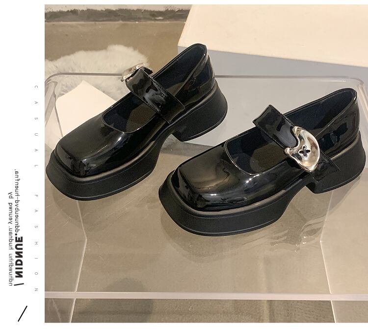 メリージェーンの靴の女性の2022年夏の新しいファッションオールマッチネットレッドレトロスクエアヘッド厚いヒール滑り止めの小さな革の靴の潮 シューズ サマー 夏物 レザー スクウェア jxjxf54079350117