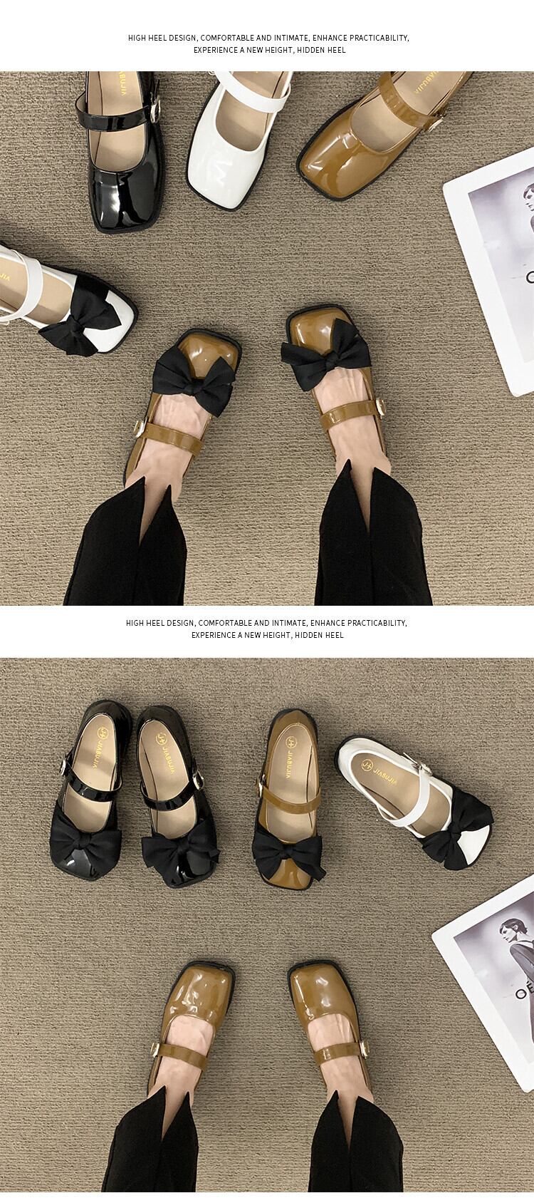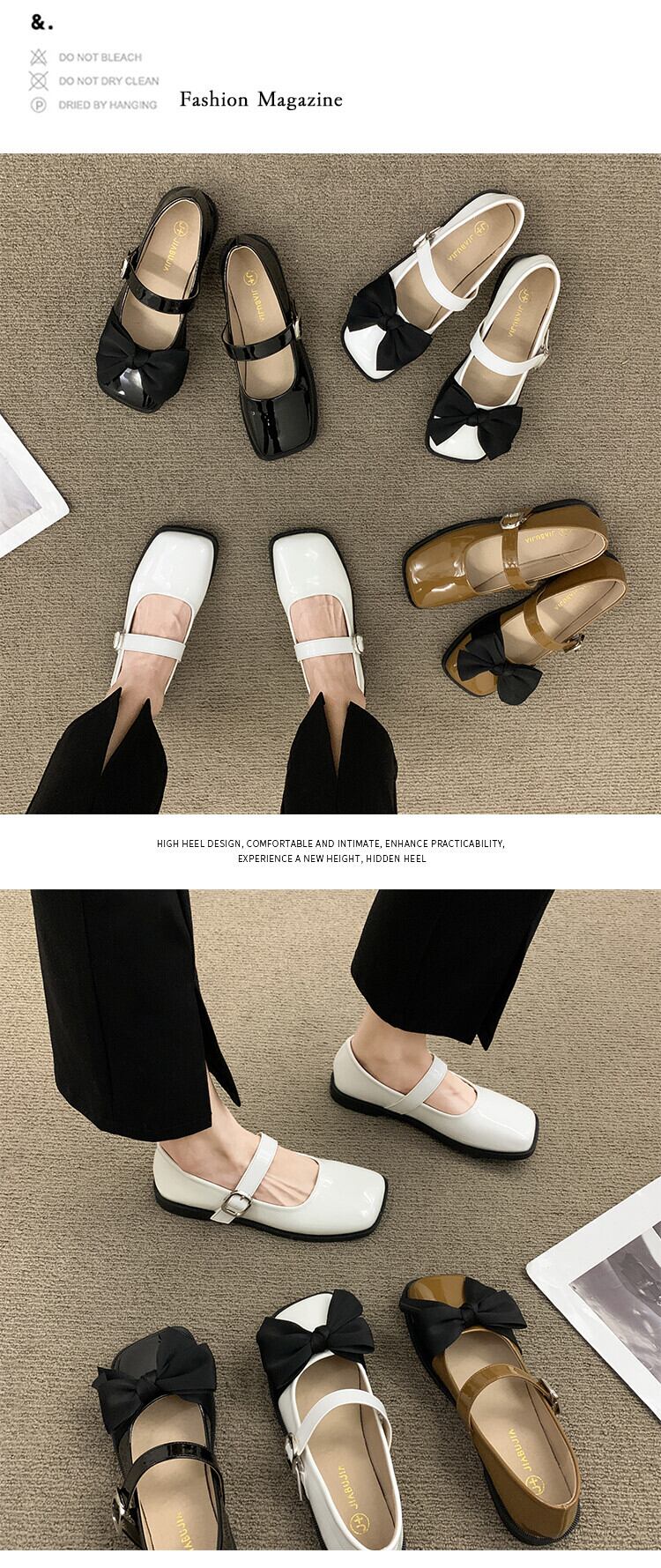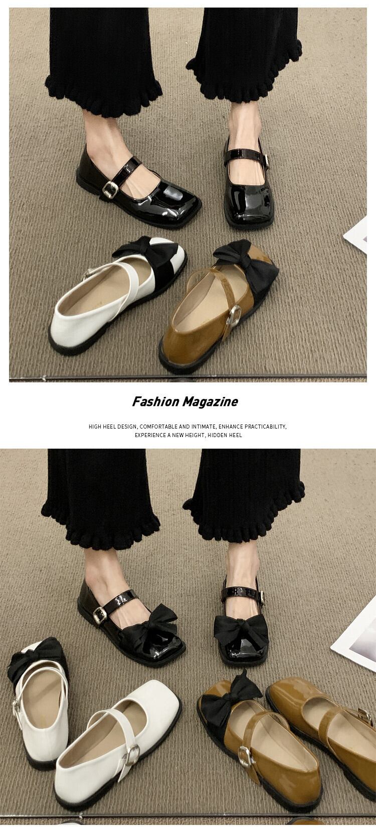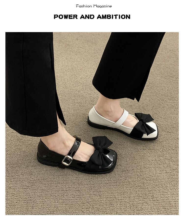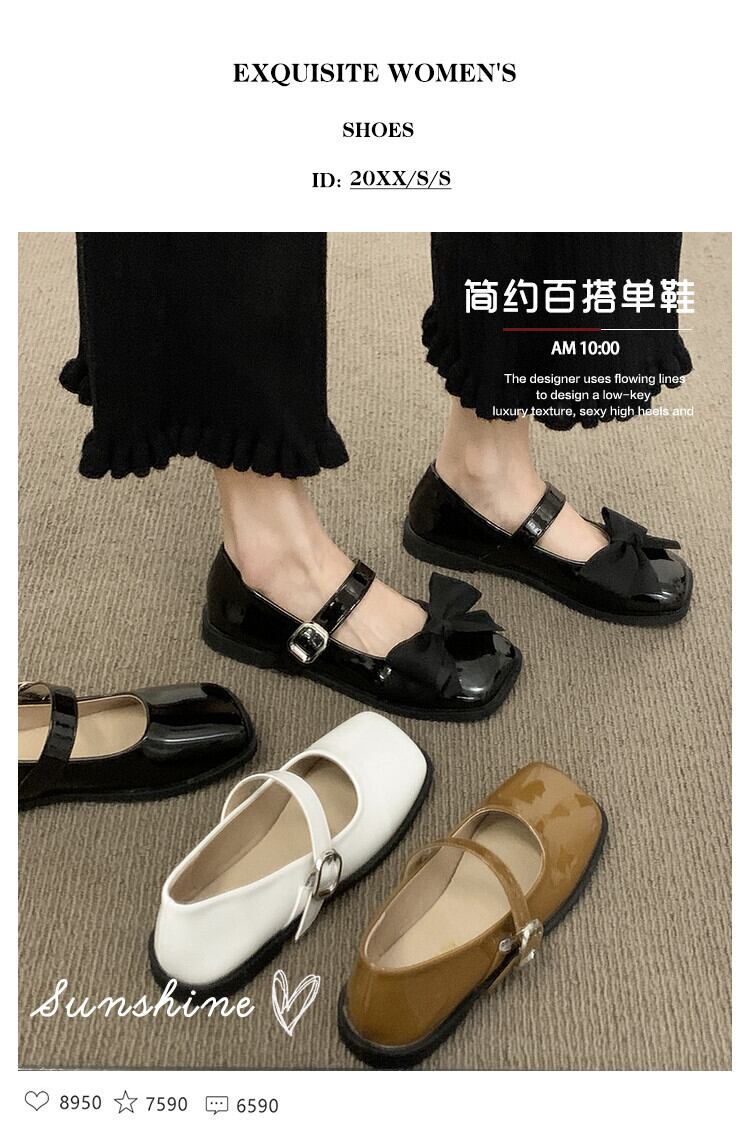 小さな革の靴女性の2022年夏の新しいファッションオールマッチレトロボウスクエアトゥフラット滑り止めメアリージェーンシューズ リボン サマー 夏物 レザー スクウェア jxjxf27112306315
