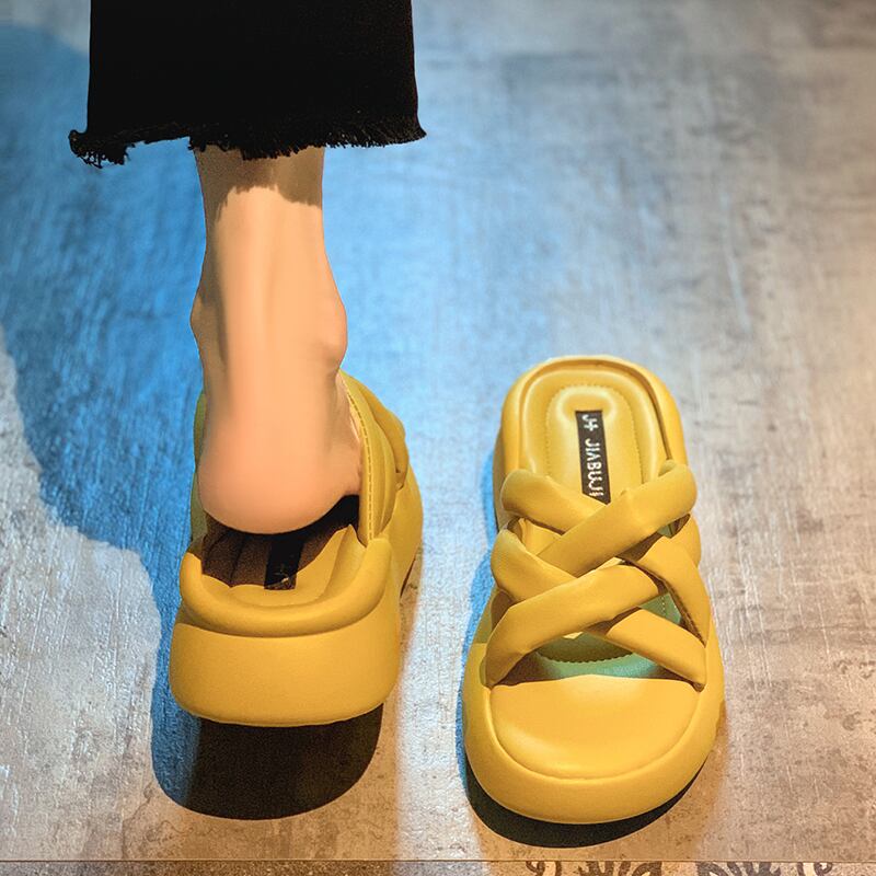 サンダルとスリッパの女性は2022年夏に新しい織りの厚い底の滑り止めネットの赤いファッションオールマッチレトロな快適なビーチサンダルを着用します レッド ミュール 靴 シューズ サマー 夏物 jxjxf72326636484