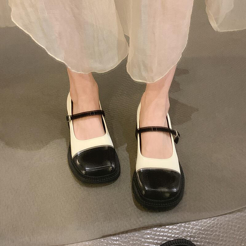 ジアブーフェイクシングルシューズ2022年夏の新作夏のファッショントレンドオールマッチ厚手のヒールカラーマッチングメアリージェーンスモールレザーシューズ 靴 サマー 夏物 jxjxf45918734941