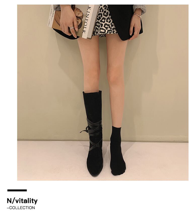先のとがったつま先のブーツの女性の2022年の新しい夏のファッションオールマッチニッチネットの赤いストラップは、薄い中高のナイトブーツを示しています レッド 靴 シューズ サマー 夏物 jxjxf33702253630