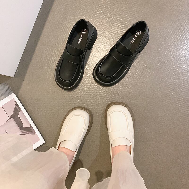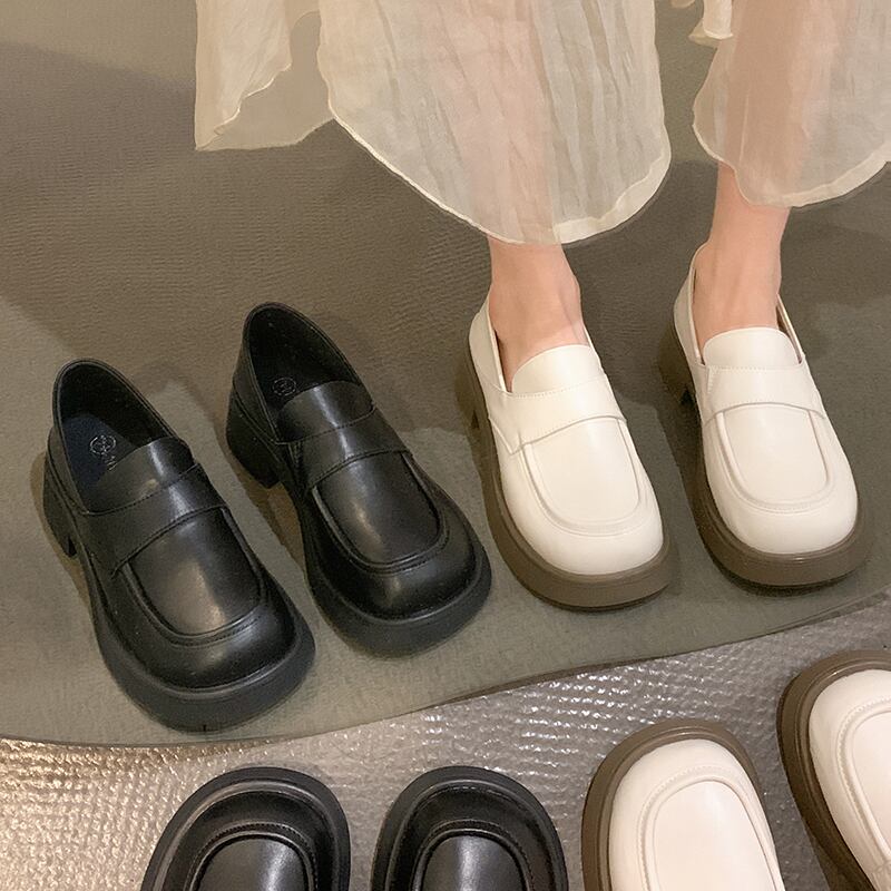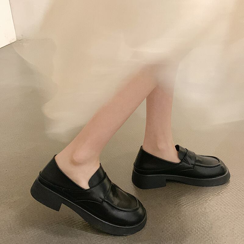ローファーレディース2022夏の新しいスーパーファッションオールマッチレトロラウンドヘッド学生厚いヒール滑り止めの小さな革の靴 シューズ サマー 夏物 レザー jxjxf59143123653
