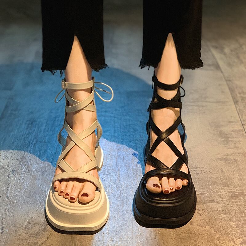 夏の女性の靴のサンダル2022新しいスーパーファッションオールマッチ学生のeignスタイルの厚いヒール滑り止めのレトロなローマの靴 シューズ サマー 夏物 jxjxf89837945631