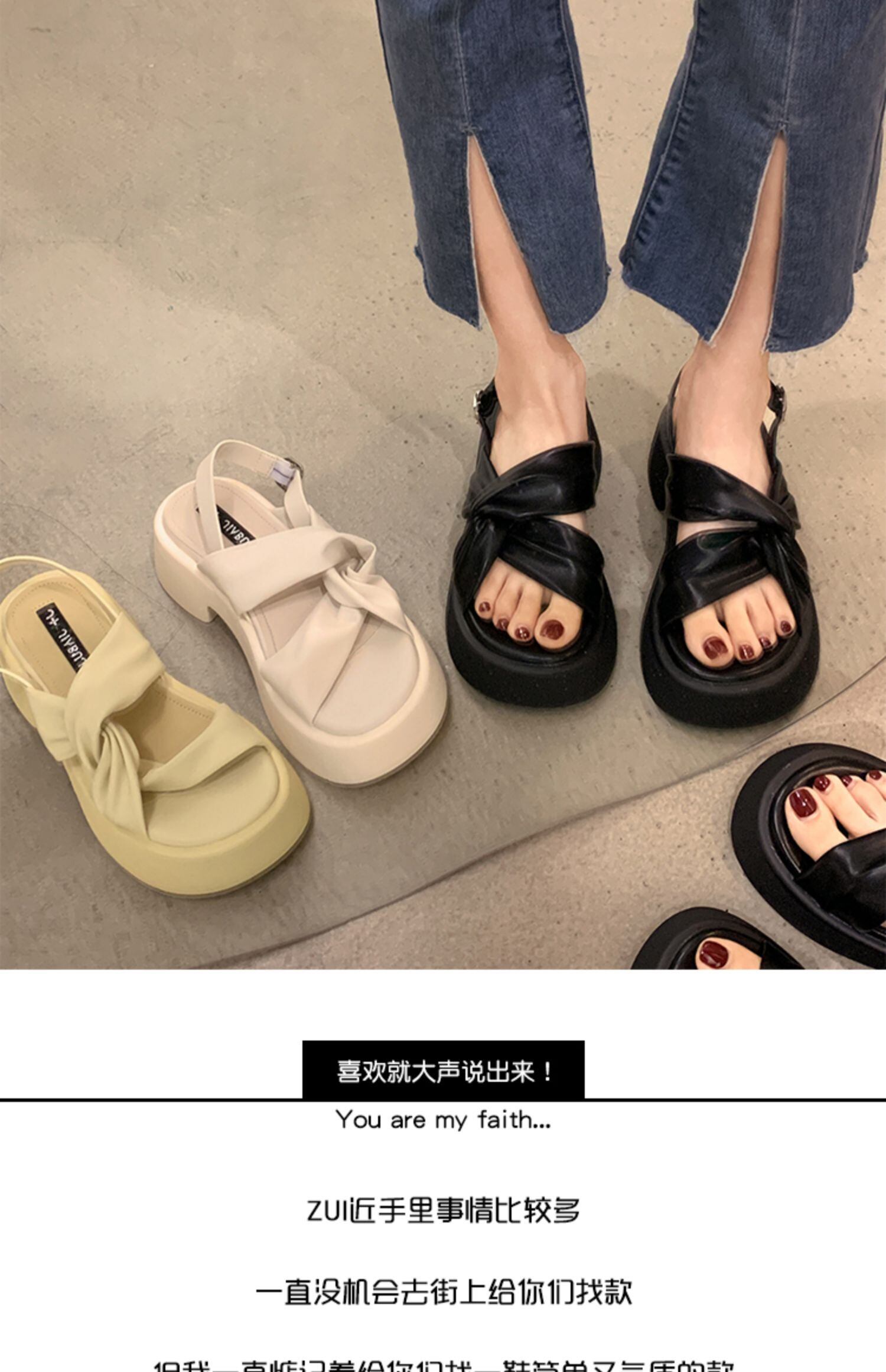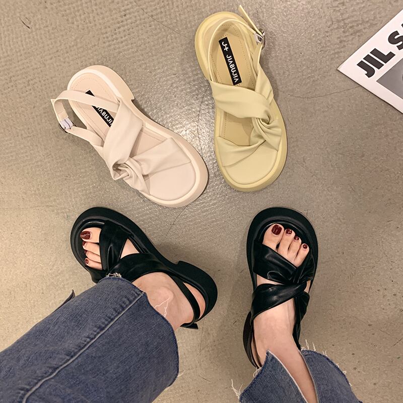 レディースサンダル2022年夏新しいファッションオールマッチレトロクロス学生厚手のヒール滑り止めカジュアルビーチシューズ 靴 サマー 夏物 jxjxf49163689860