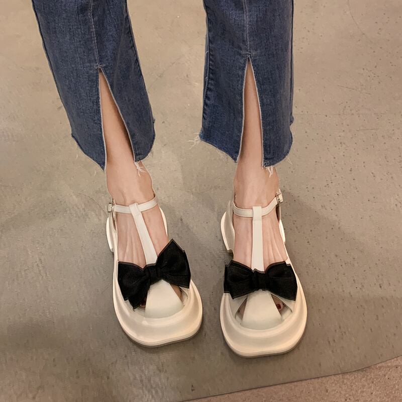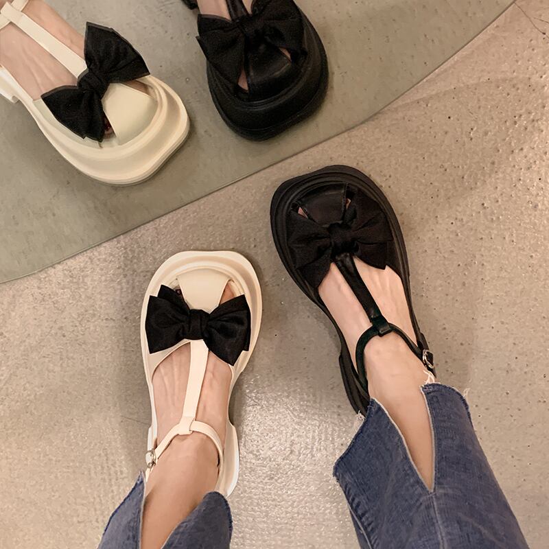 包頭サンダル女子2022年夏新作ファッションオールマッチレトロボウスモールシックヒールノンスリップローマンシューズ 靴 リボン サマー 夏物 jxjxf37764538027