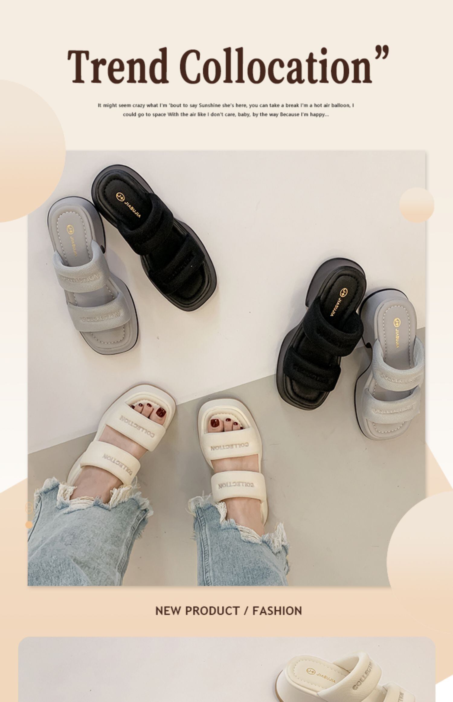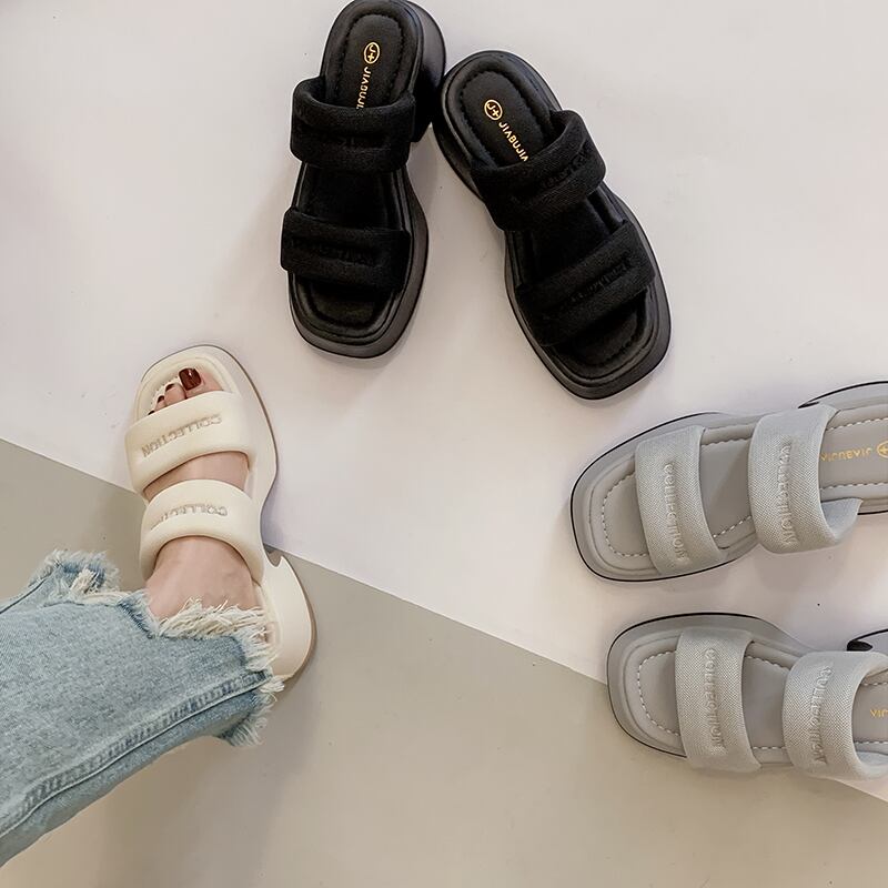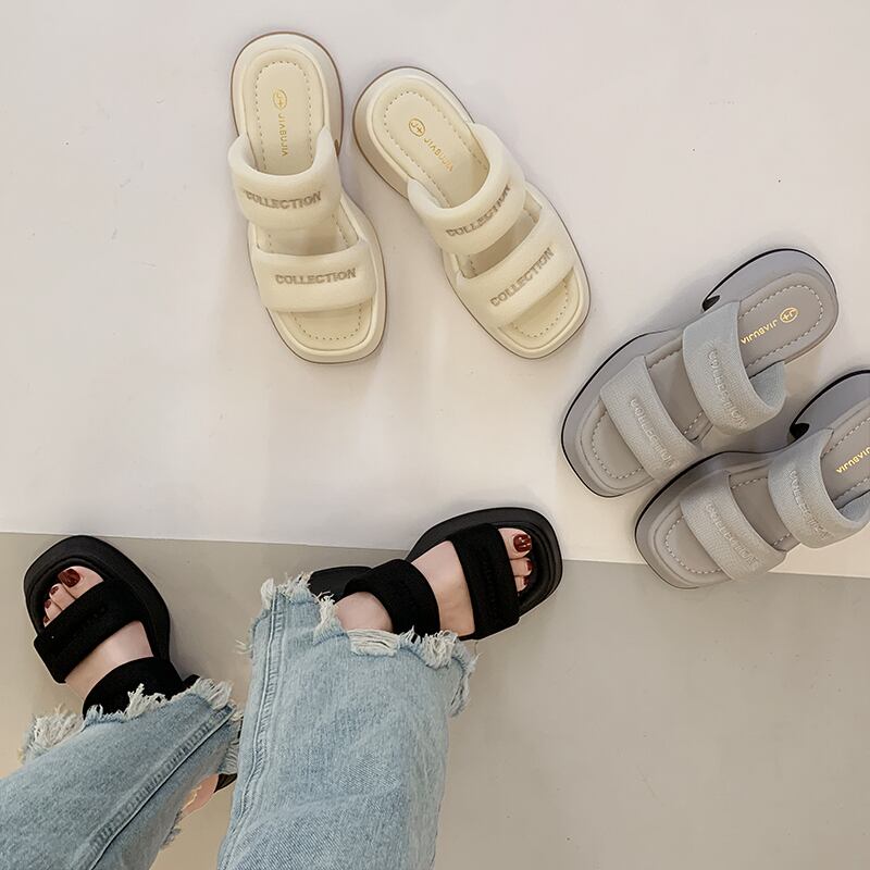 スリッパ2022年夏アウターウェア多用途で快適な厚手のヒール滑り止めワンワードサンダルとスリッパ ミュール 靴 シューズ サマー 夏物 jxjxf61415348097