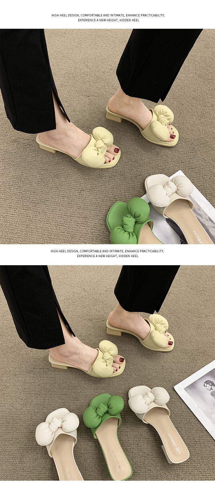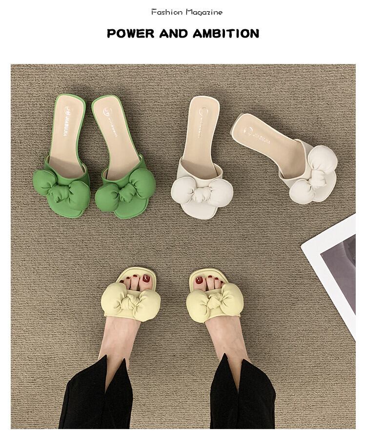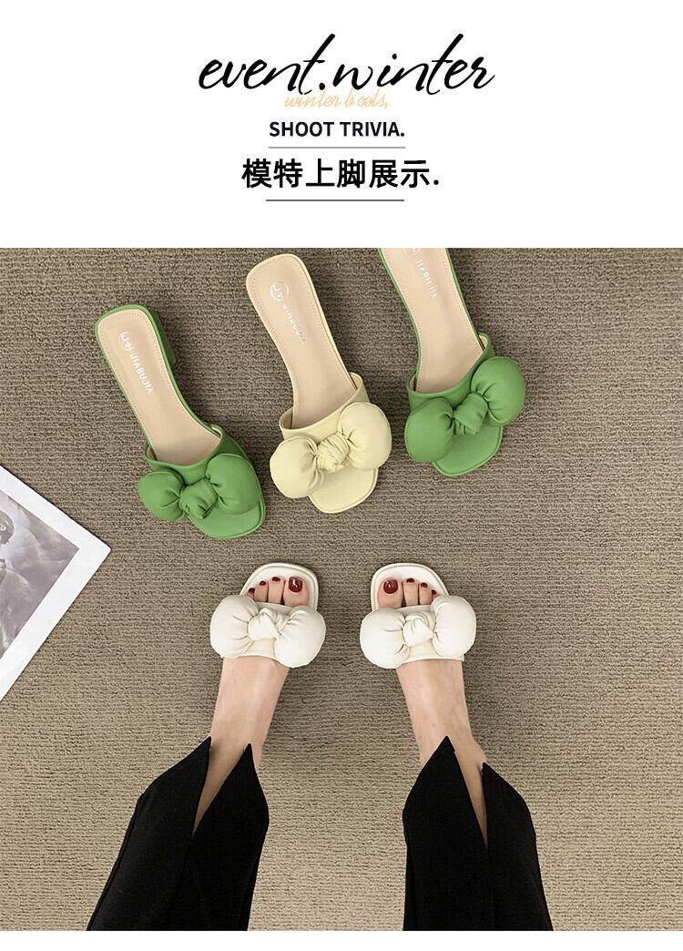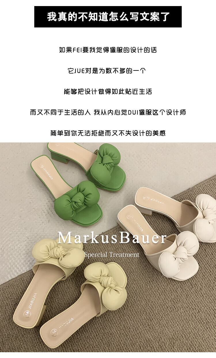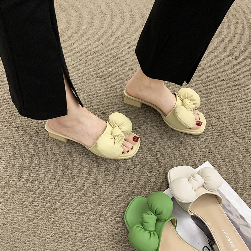 ネットの赤いサンダルとスリッパの女性のスーパー2022年夏の新しいアウターウェアオールマッチボウ厚いヒール滑り止めワードドラッグタイド レッド リボン 靴 シューズ ミュール サマー 夏物 jxjxf46369534460