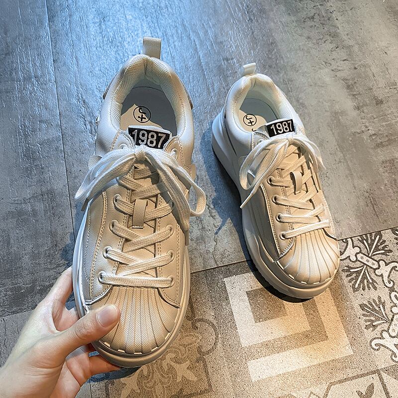 JiaBuフェイクシューズレディース2022年新しい夏のファッションオールマッチカジュアルスニーカー厚底増加シェルヘッド小さな白い靴 ホワイト サマー 夏物 jxjxf95322628934