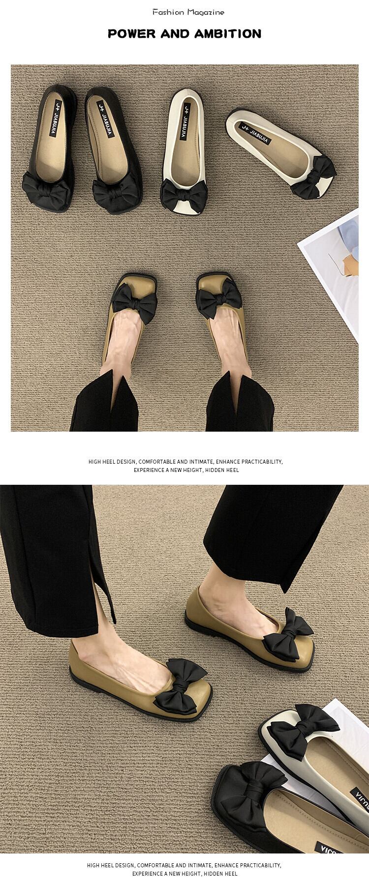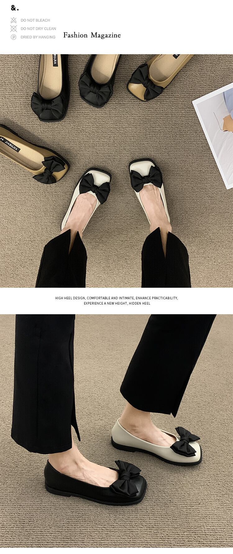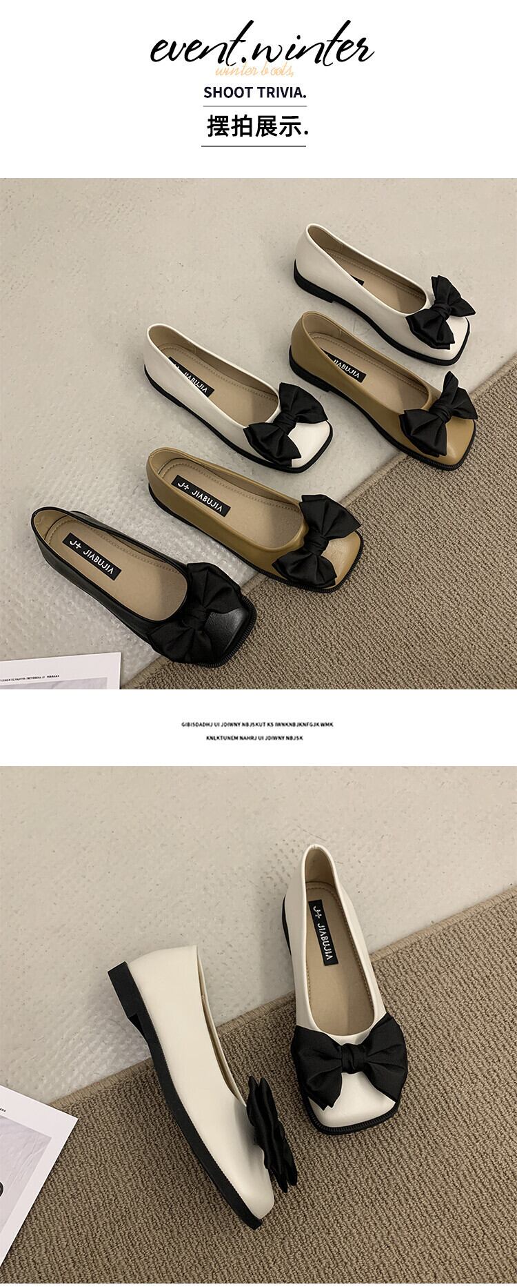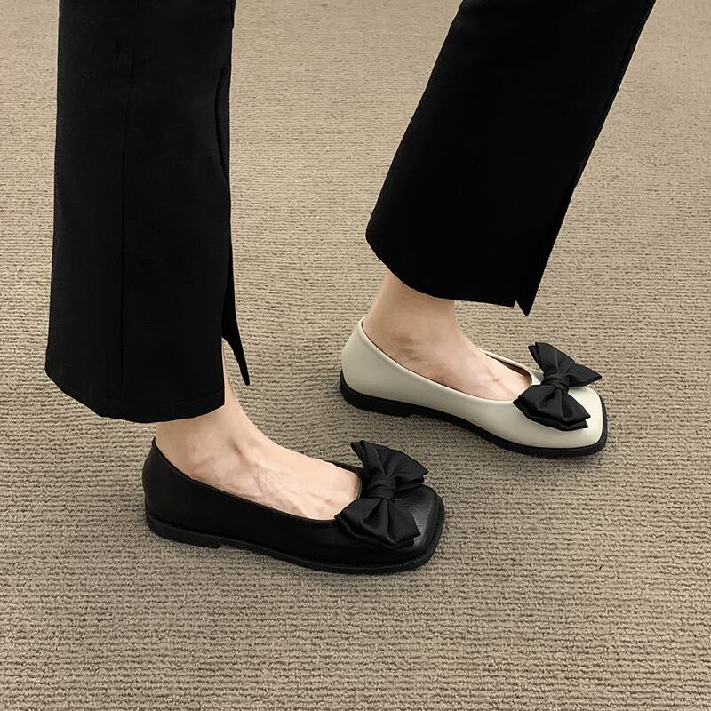 靴女性の2022年夏の新しいファッションオールマッチレトロボウ浅い口フラット滑り止めスクエアトゥスモールレザーシューズ リボン サマー 夏物 スクウェア jxjxf72418738154