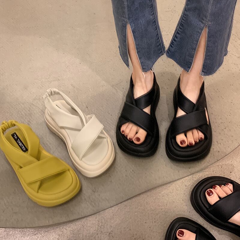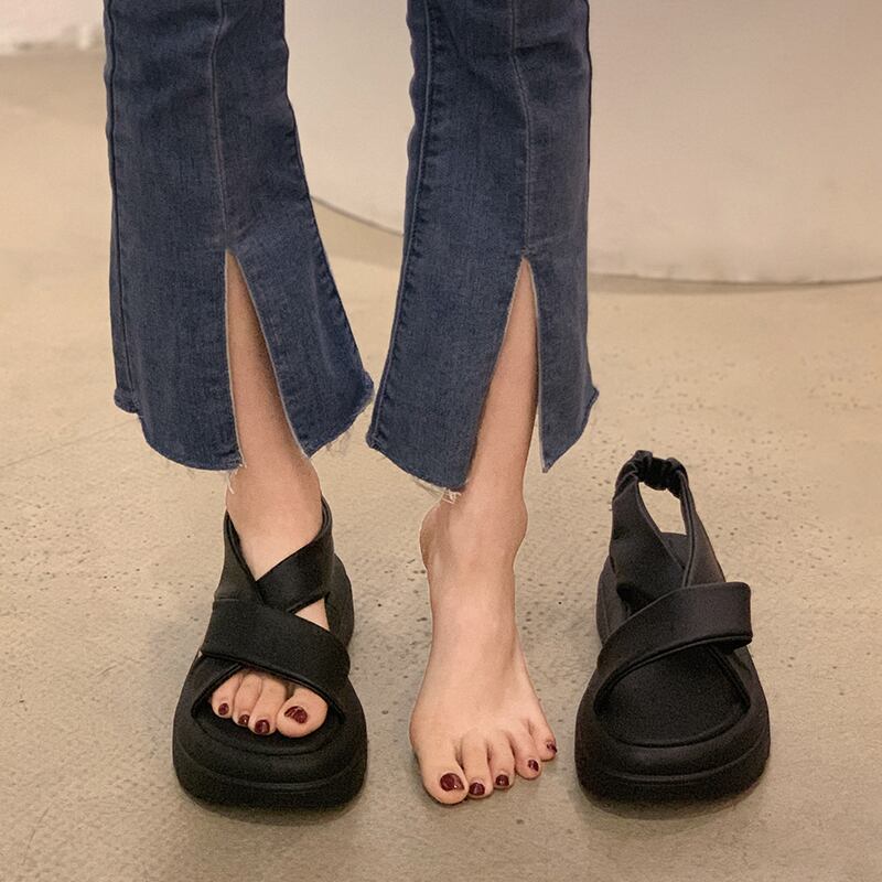 厚底サンダル女子2022年夏新しい洋風ワイルドスポーツオープントゥ平底カジュアルベルクロプラットシューズ 靴 サマー 夏物 jxjxf22659623295