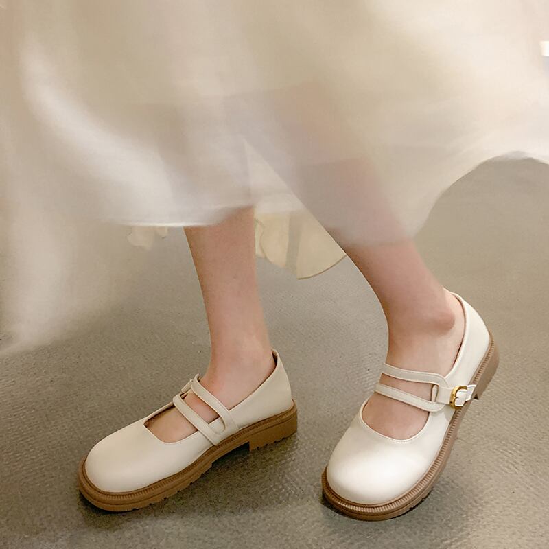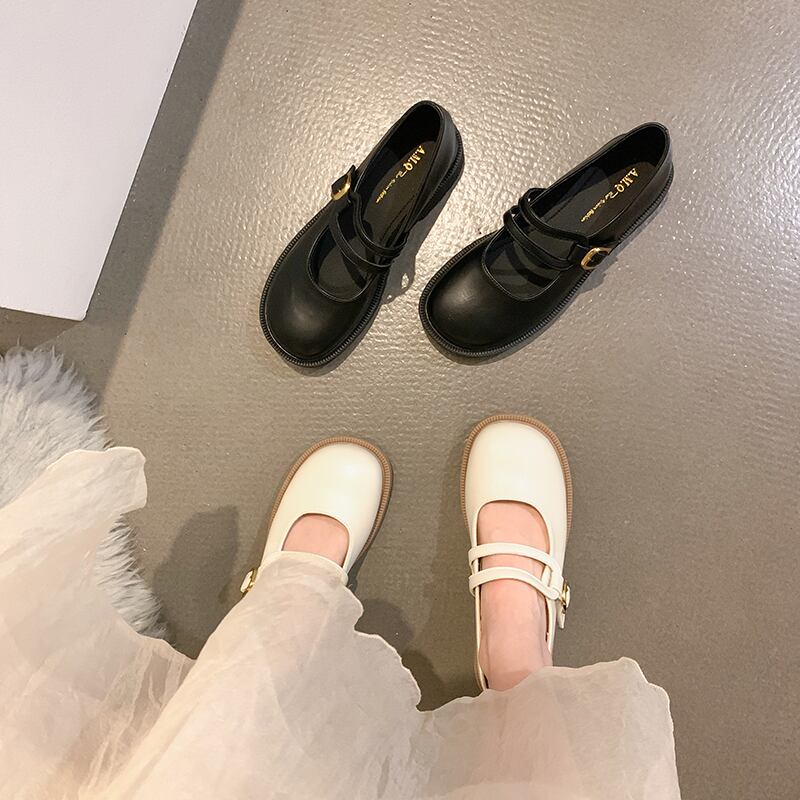 フラットシューズ女性の2022年夏の新しいフランスのレトロな甘いese浅い厚い底メアリージェーン小さな革の靴 大人ガーリー スウィート キュート カジュアル サマー 夏物 レザー jxjxf30001451712
