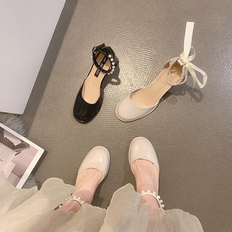包頭サンダルレディース2022年新夏フレンチファッション洋風洋風パールメアリージェーンハイヒール 靴 シューズ サマー 夏物 真珠 jxjxf76333825251