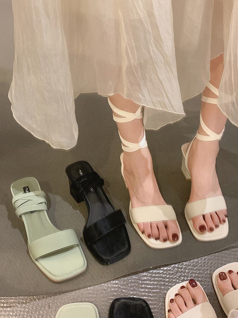 サンダル女子2022年夏新しいスーパーファッションオールマッチクロスストラップ厚手のヒールノンスリップエインスタイルローマの靴の潮 シューズ サマー 夏物 jxjxf9092651980