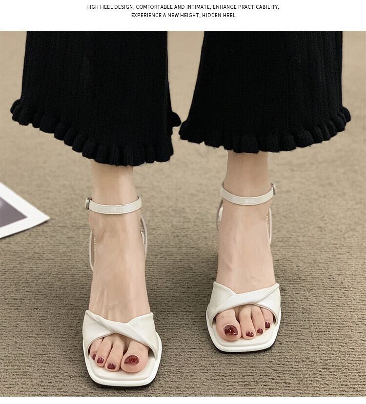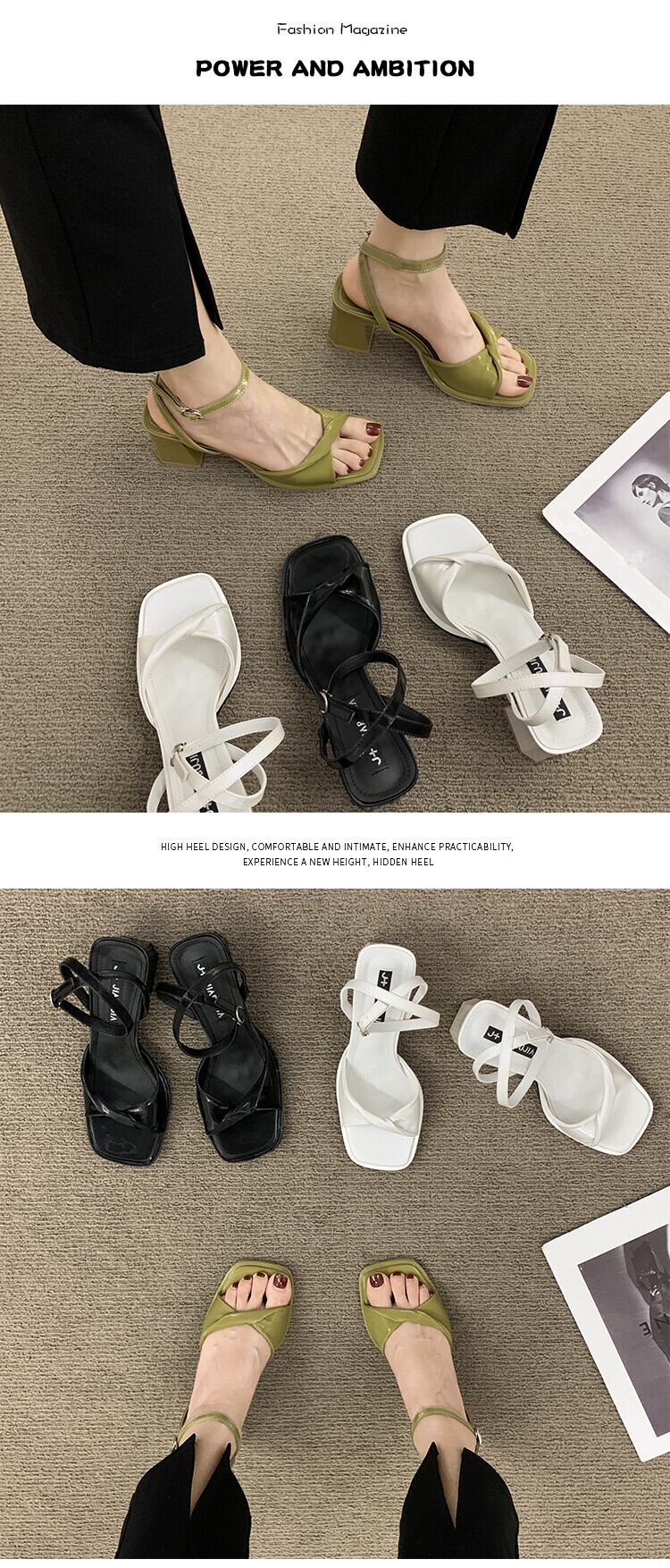 サンダルレディース2022年新夏厚手のヒールノンスリップネットレッドスーパーファッションフェアリースタイルレトロワンワードハイヒール 靴 シューズ サマー 夏物 jxjxf63051171335