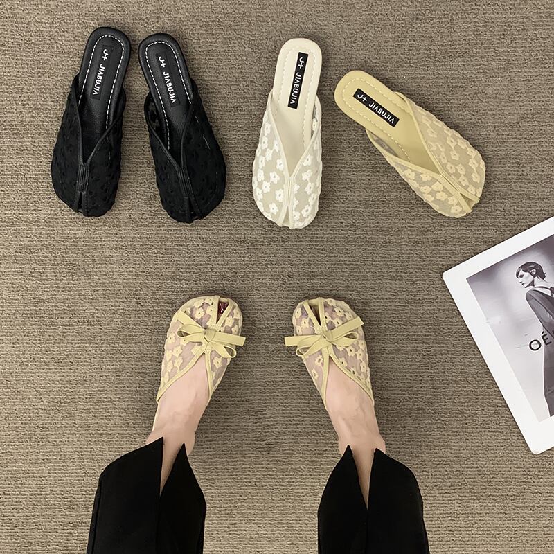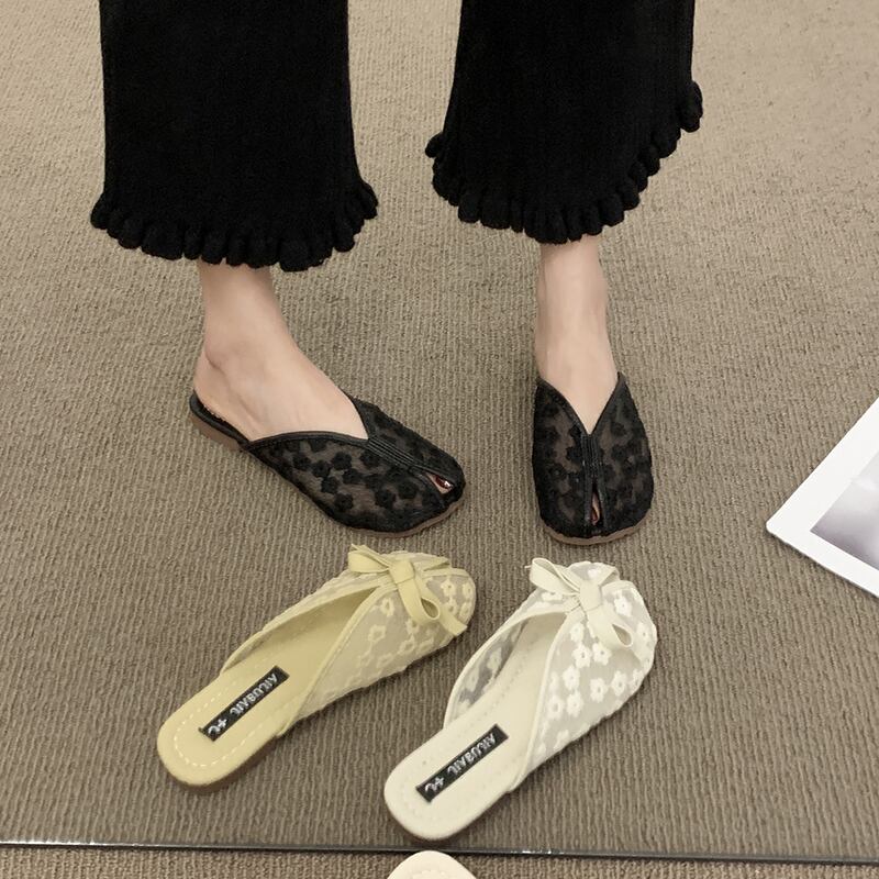 スリッパの女性は夏の包頭2022を着用します新しいファッションオールマッチメッシュ刺繍平底滑り止めサンダルとスリッパ潮 レッド ミュール 靴 シューズ サマー 夏物 jxjxf22771068861