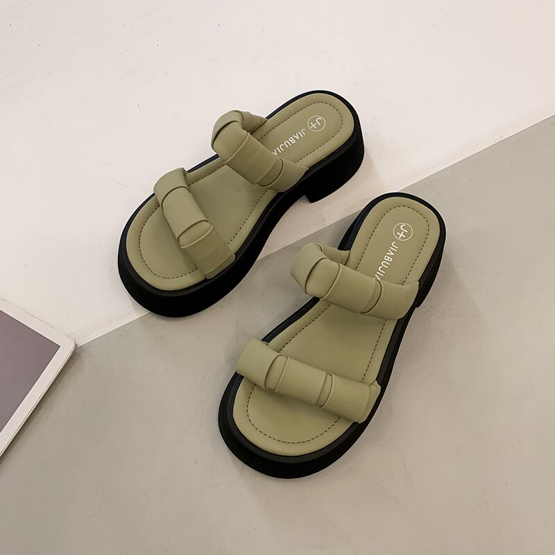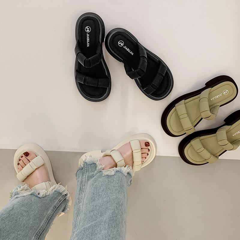 2022年夏の女性の夏の外のスリッパ新しいフレンチスタイルの優しい厚い底のファッションカジュアルなスーパーフライドストリート一言サンダル ミュール 靴 シューズ サマー 夏物 jxjxf82188839969