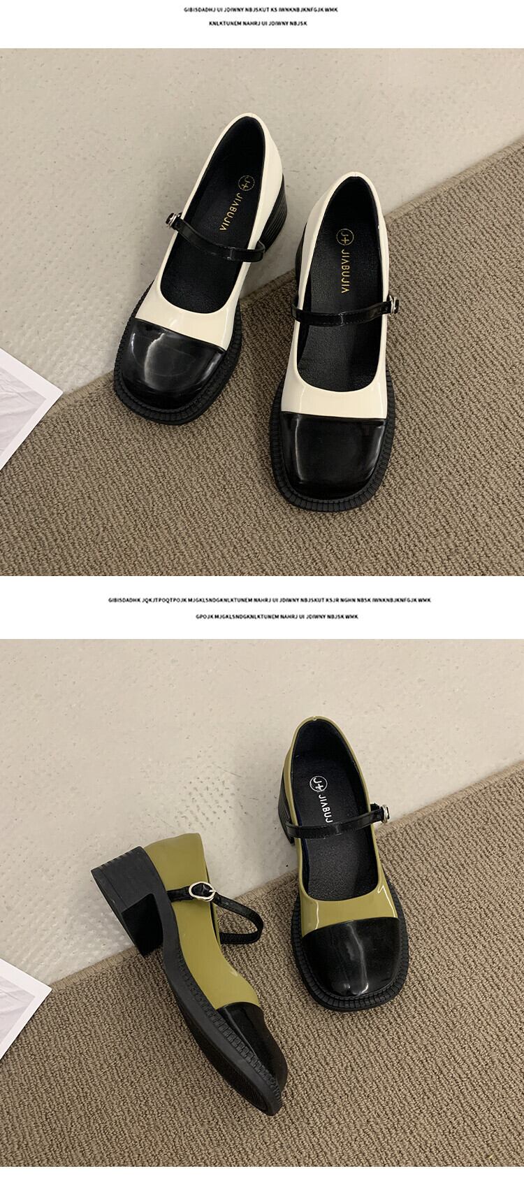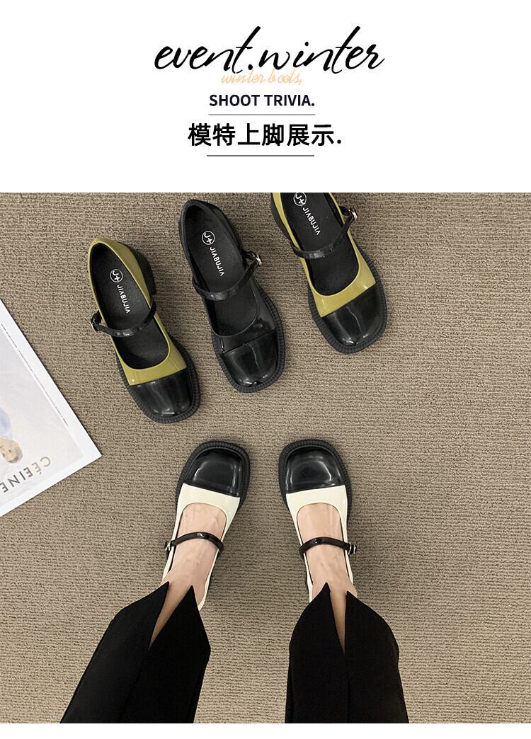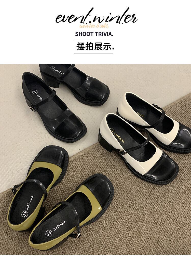 メリージェーンの靴の女性の2022年夏の新しいスーパーファッションオールマッチスクエアトゥシックヒール滑り止めレトロスモールレザーシューズタイド サマー 夏物 スクウェア jxjxf45814801328