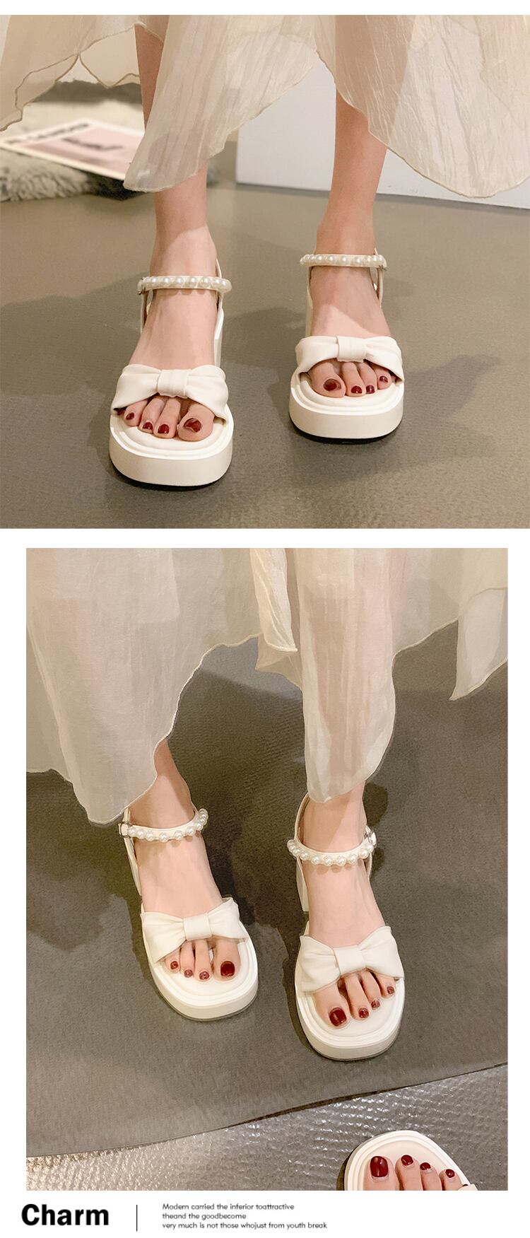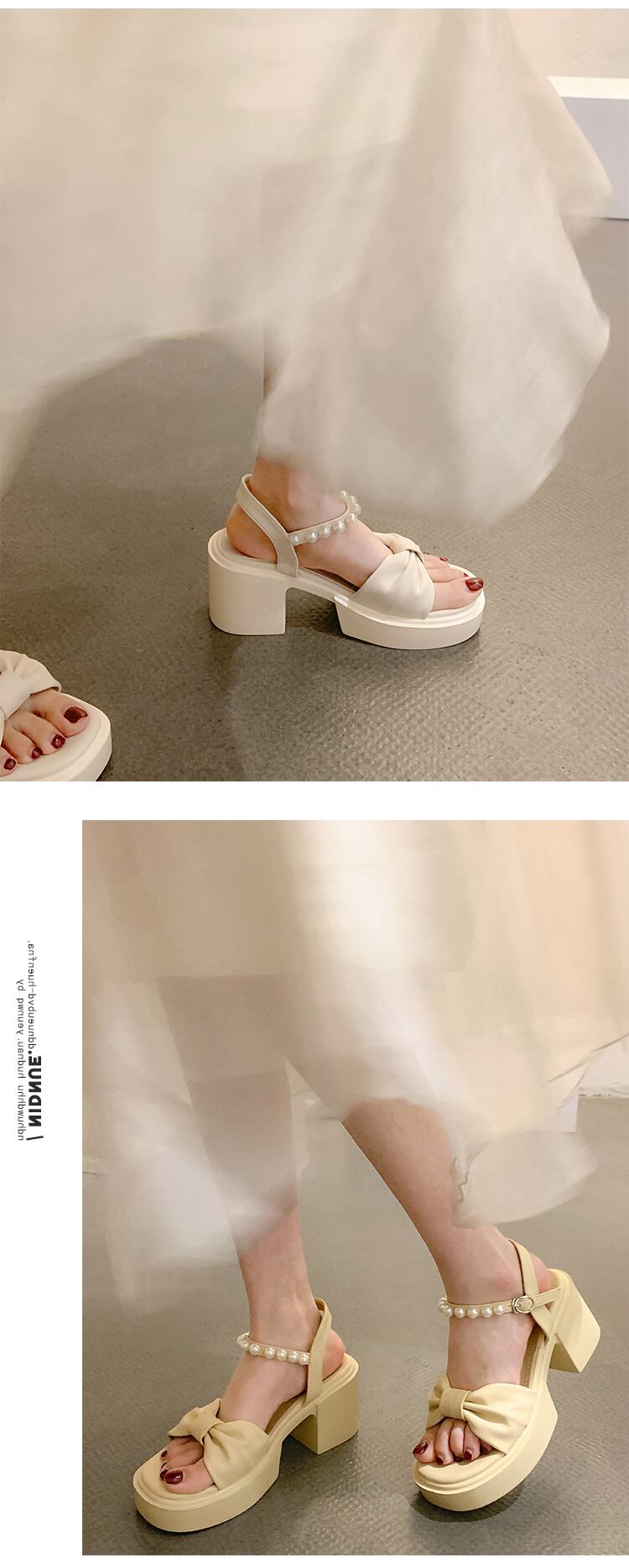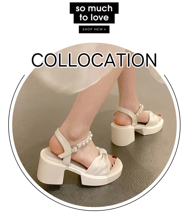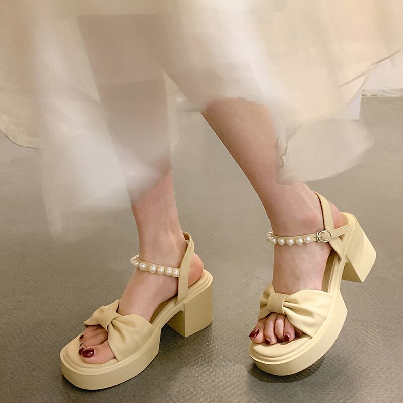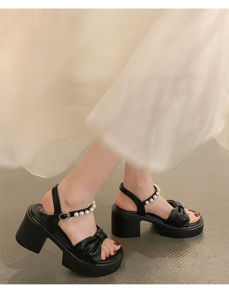 レディースサンダル2022年夏の新作ファッションオールマッチパールバックルシックヒールノンスリップフェアリースタイルハイヒールトレンド 靴 シューズ サマー 夏物 真珠 jxjxf83038505020