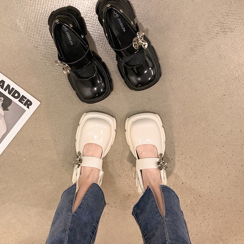 メリージェーンの靴の女性の2022年夏の新しいスーパーファッションオールマッチスクエアヘッドの学生の厚いかかと滑り止めの甘くてクールな小さな革の靴 シューズ ヒール 大人ガーリー スウィート キュート カジュアル サマー 夏物 レザー スクウェア jxjxf28997944973