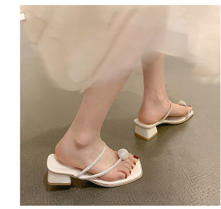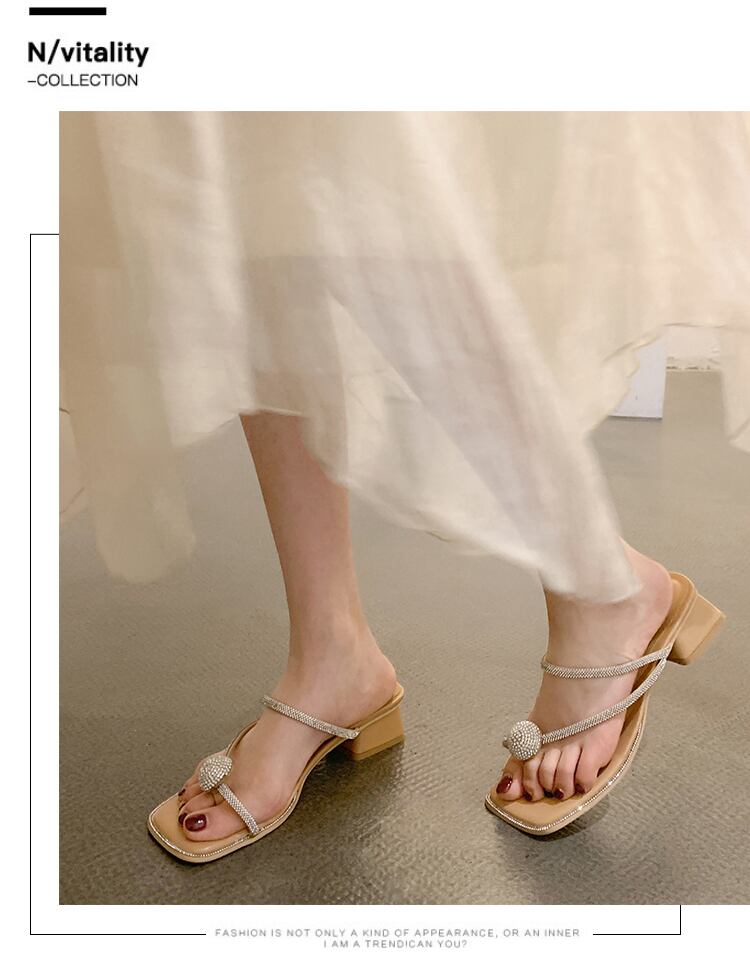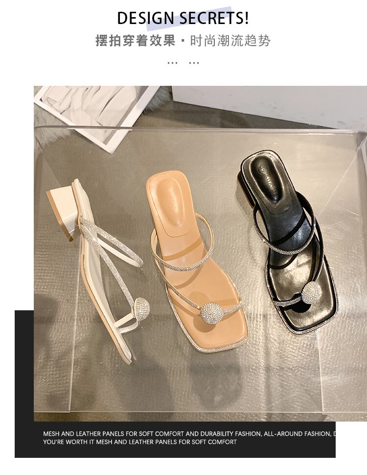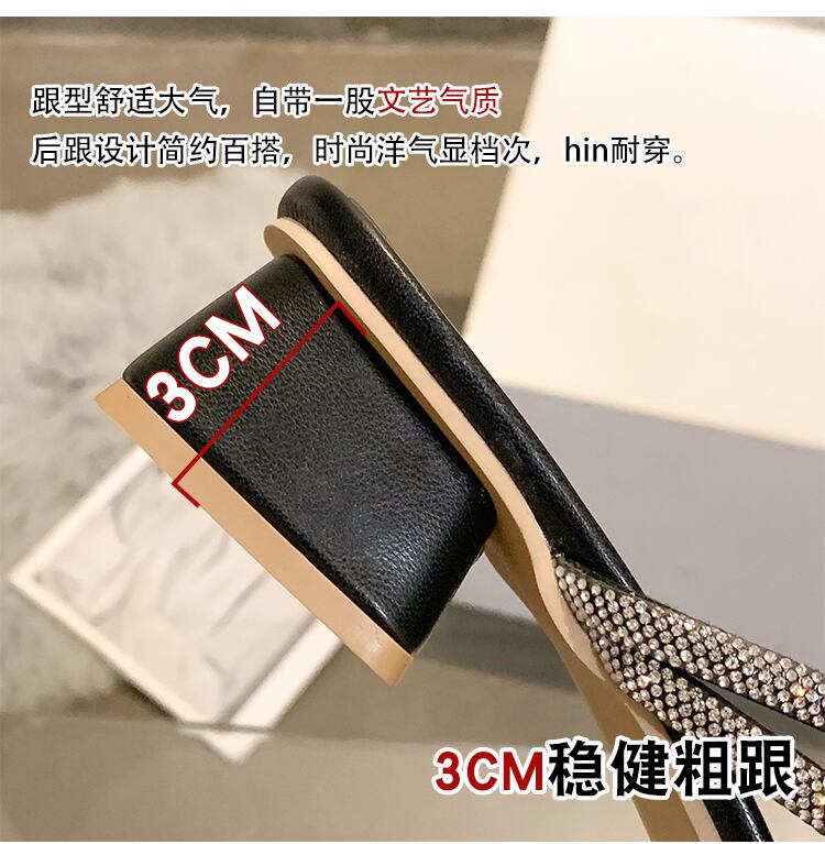 フェアリースタイルのスリッパ女性の2022年夏の新しいラインストーンローヒールノンスリップネットレッドファッションセットトゥサンダルとスリッパ ミュール 靴 シューズ サマー 夏物 jxjxf32986769266