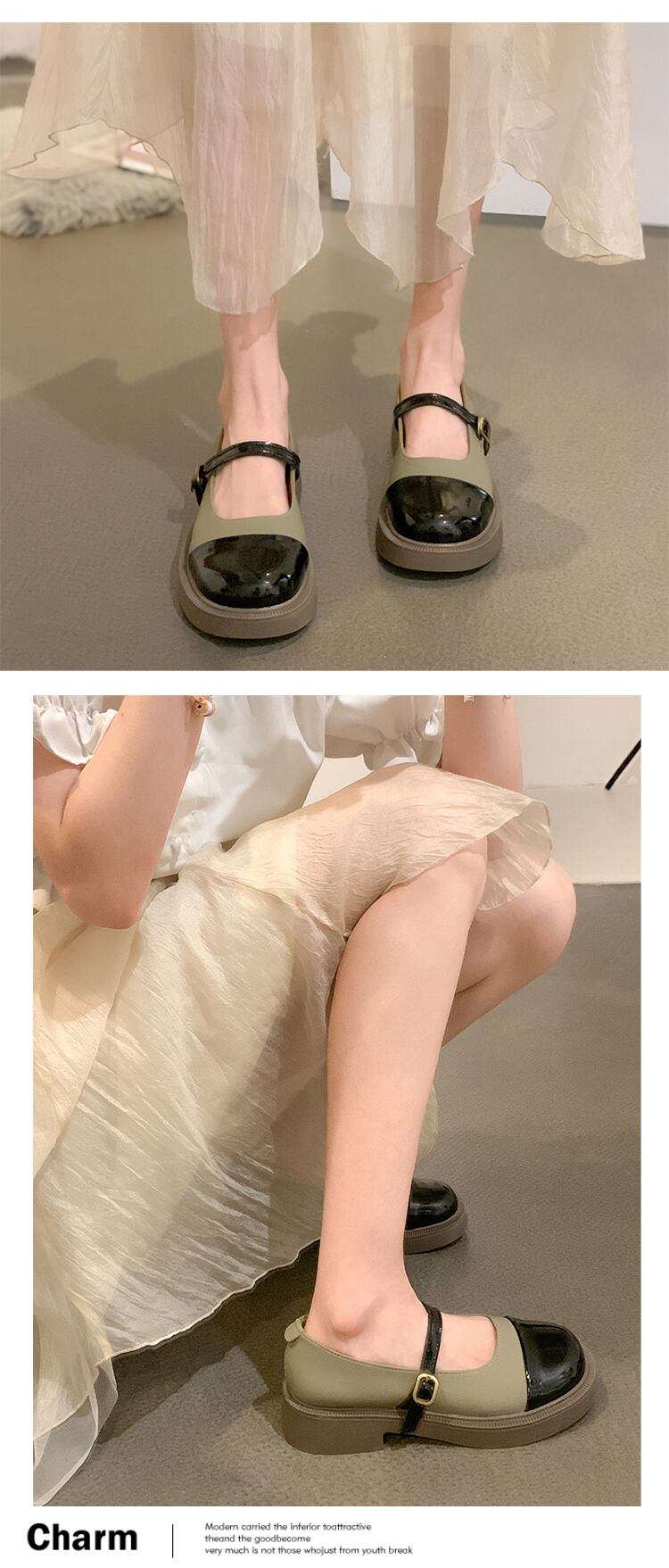 メリージェーンの靴の女性の2022年夏の新しいファッションオールマッチレトロバックルラウンドヘッド厚いヒール滑り止めの小さな革の靴の潮 シューズ サマー 夏物 レザー jxjxf90852635582