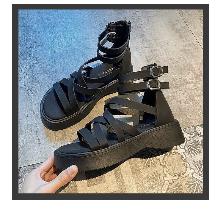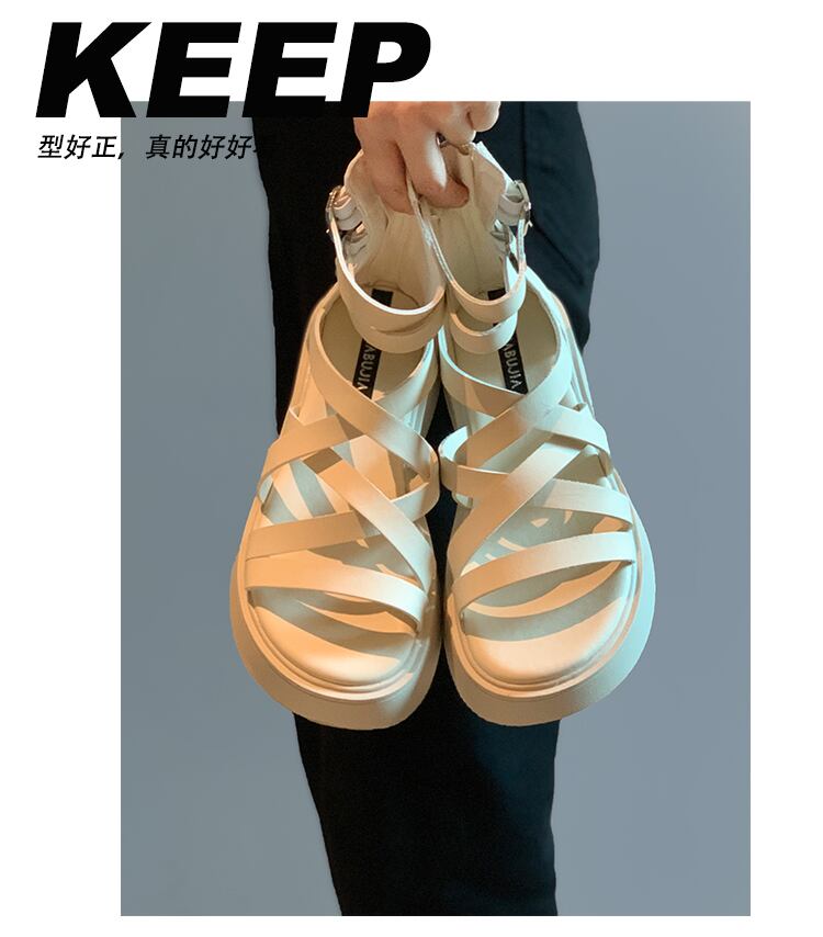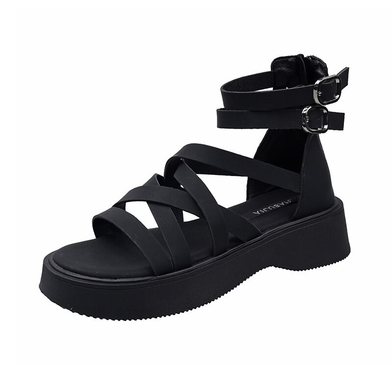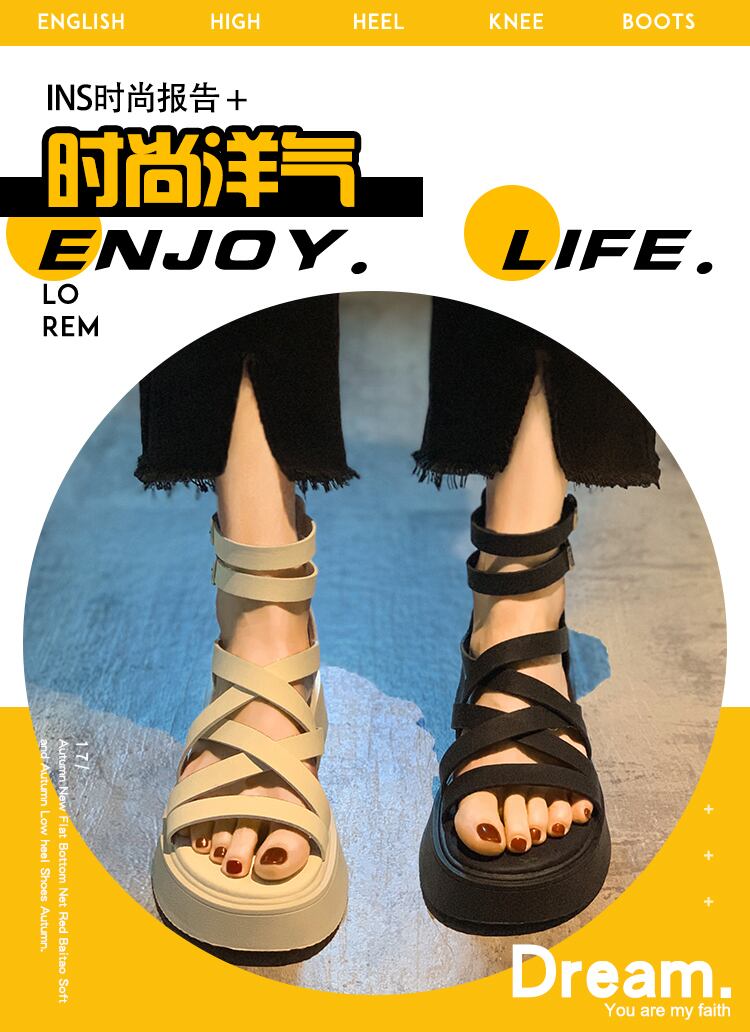 ローマのレトロなサンダルレディース2022年夏の新しいクロス厚い底滑り止めネット赤いファッションオールマッチカジュアルビーチシューズ 靴 レッド サマー 夏物 jxjxf8366622234