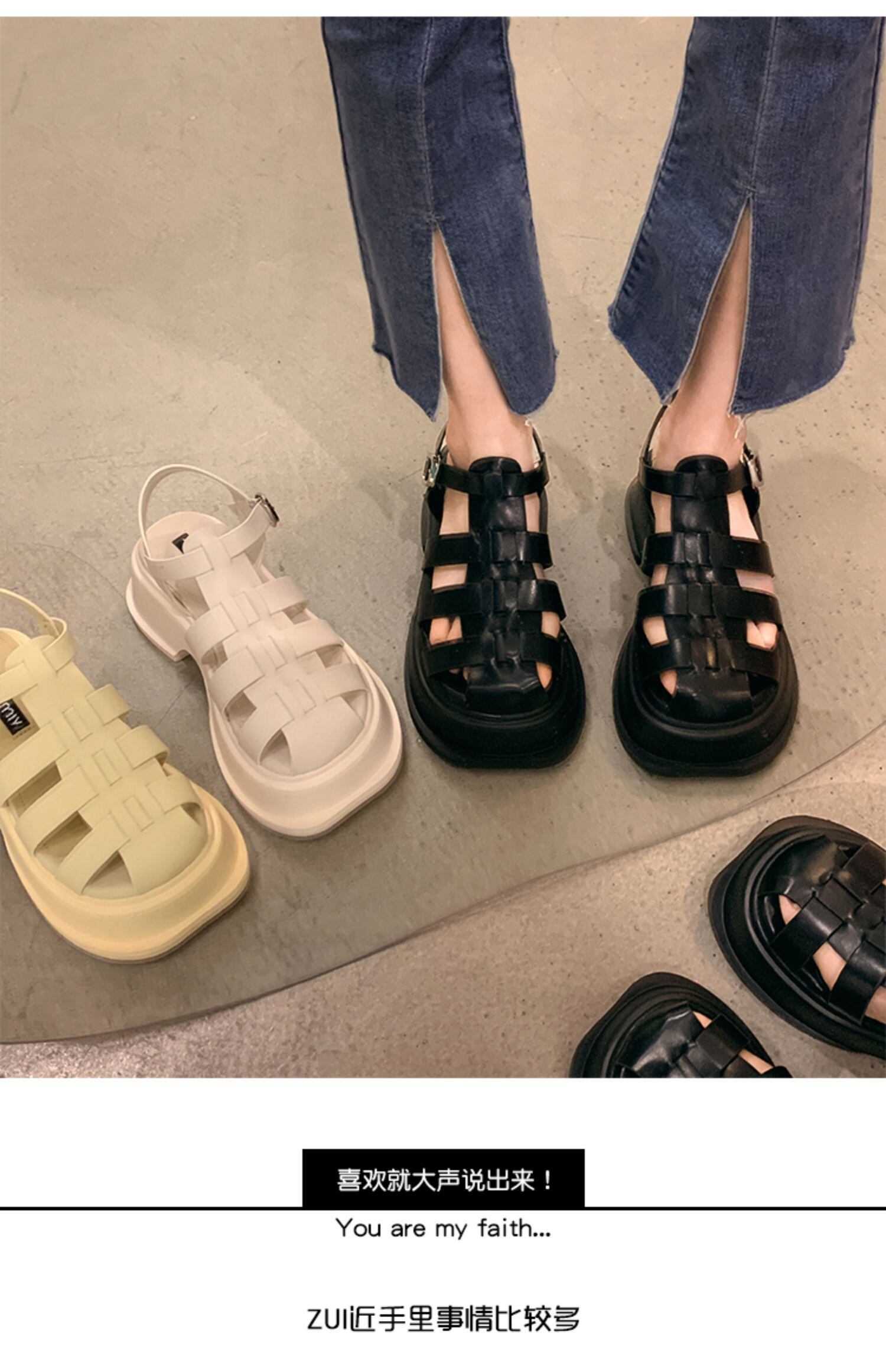 厚底のローマの靴の女性の2022年夏の新しいファッションオールマッチ小さな厚手のかかとの滑り止め包頭ビーチシューズの潮 サマー 夏物 jxjxf70649039362