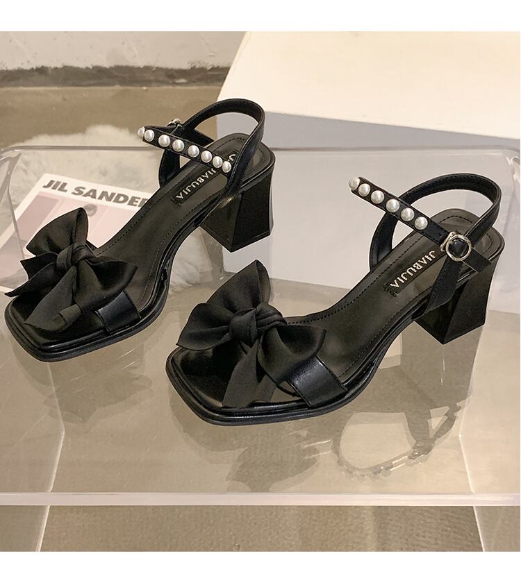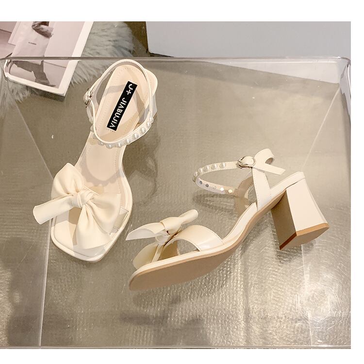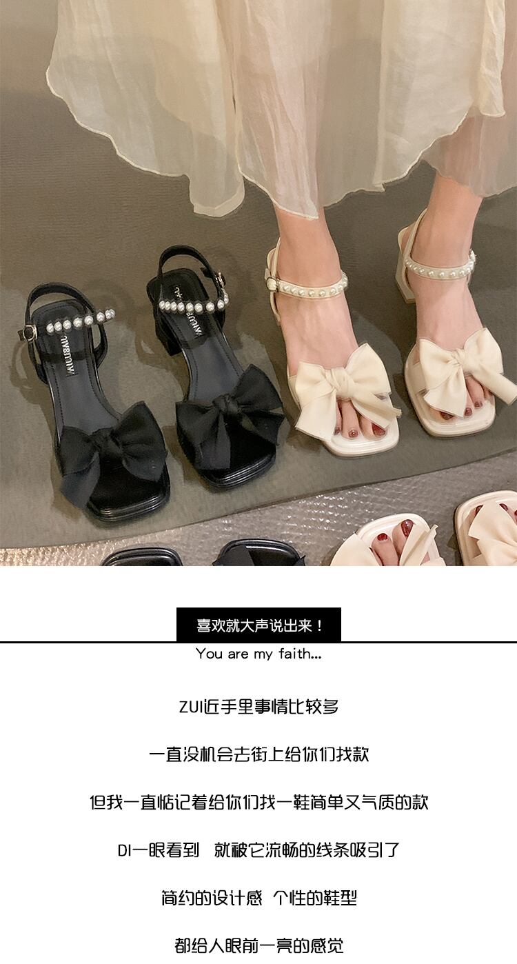 ワンワードストラップオープントゥサンダルレディース2022夏ニューボウシックヒールファッションフェアリースタイルフレンチハイヒール リボン 靴 シューズ サマー 夏物 jxjxf36752072019