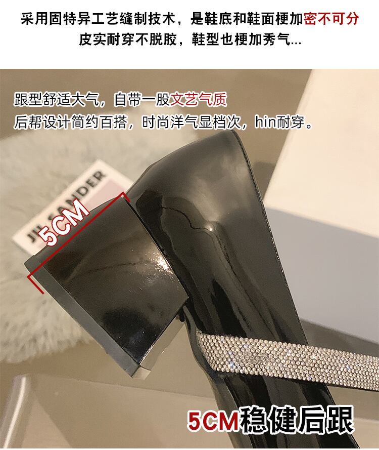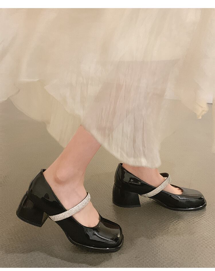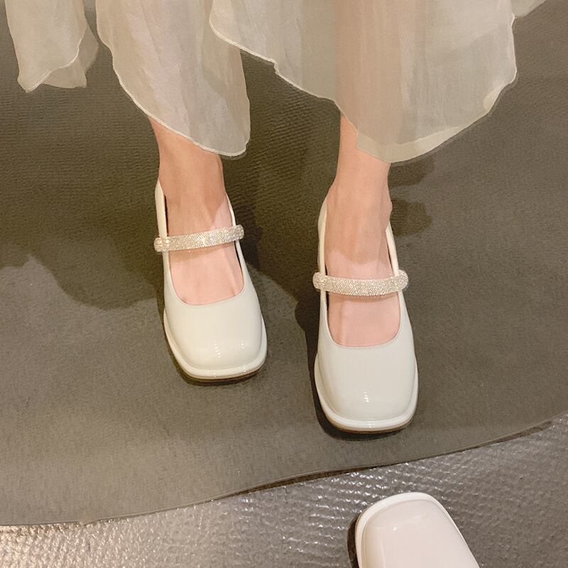 メリージェーンの靴2022年の女性の夏の新しいファッションオールマッチレトロラインストーンスクエアヘッド厚いヒール滑り止めの小さな革の靴 シューズ サマー 夏物 レザー スクウェア jxjxf32754201522