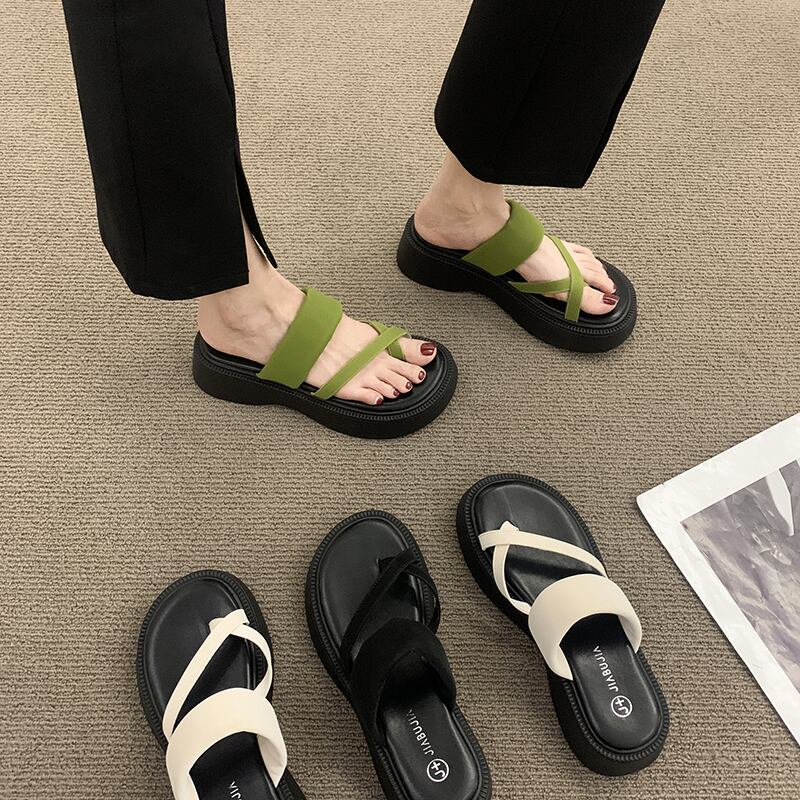 スリッパを履く夏の女性の2022年の新しいオールマッチレトロスポンジケーキ厚底滑り止めセットトゥサンダルとスリッパインタイド ミュール 靴 シューズ サマー 夏物 jxjxf90111249296