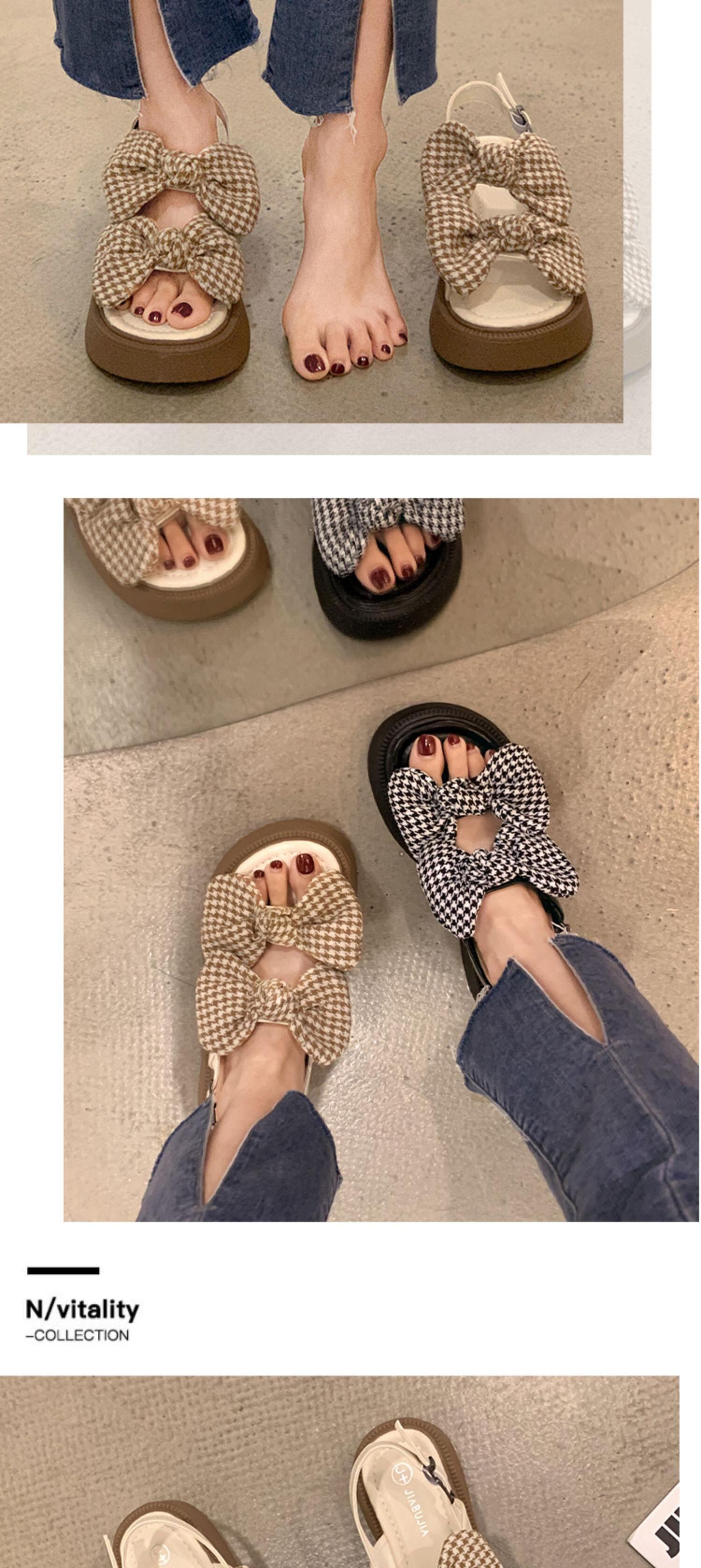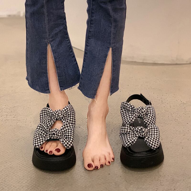 レディースサンダル2022年夏のスーパーファッションオールマッチボウスモールシックボトム滑り止めビーチシューズ 靴 リボン サマー 夏物 jxjxf45968968145