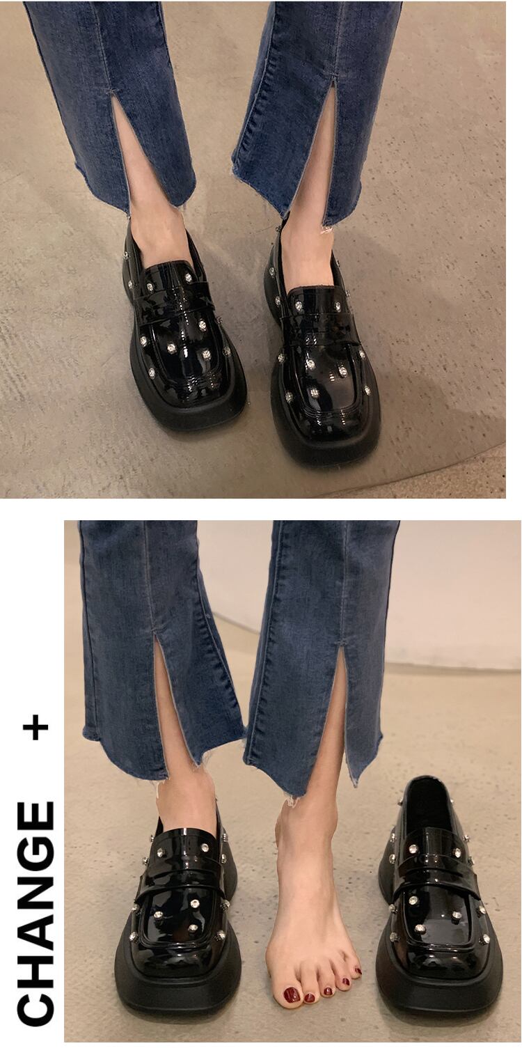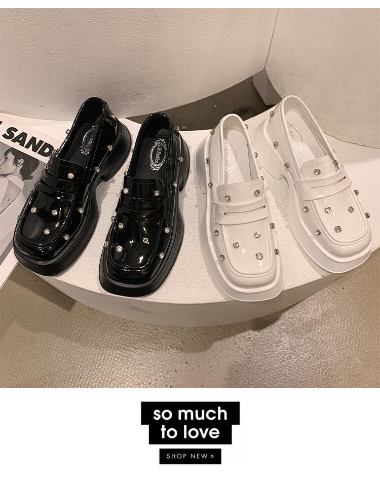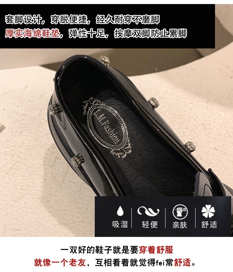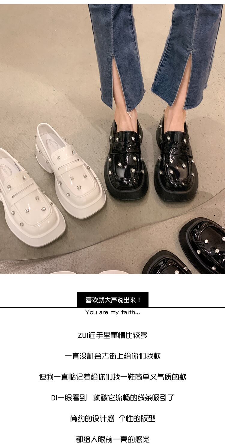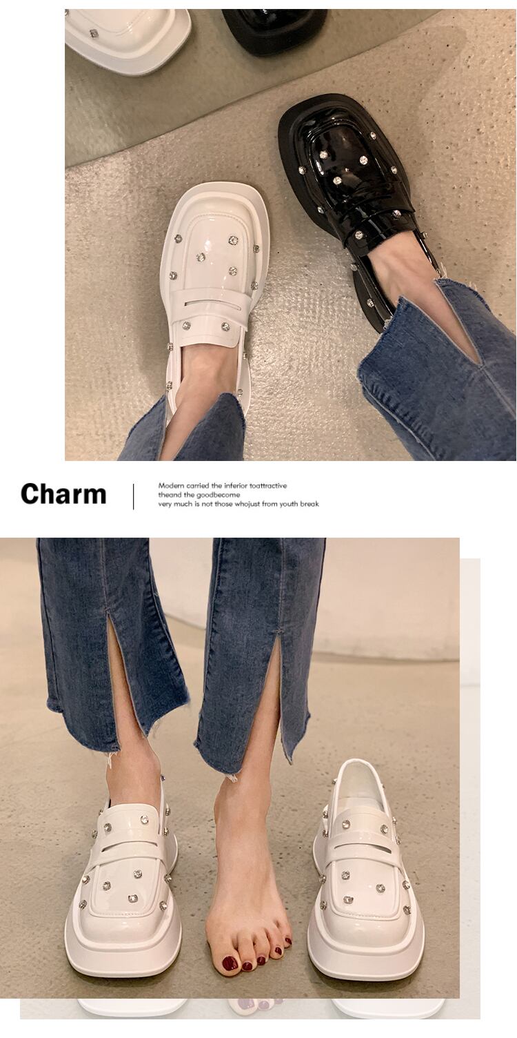 ローファーレディース2022年夏の新しいスーパーファッションオールマッチレトロラインストーンスクエアヘッド厚手のヒール滑り止めの小さな革の靴 シューズ サマー 夏物 レザー スクウェア jxjxf32211987709