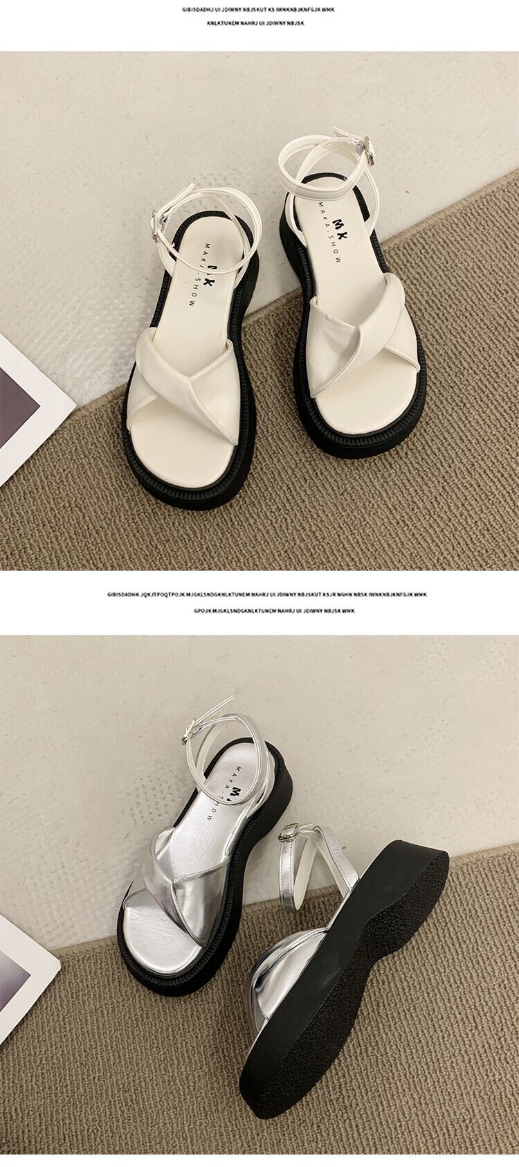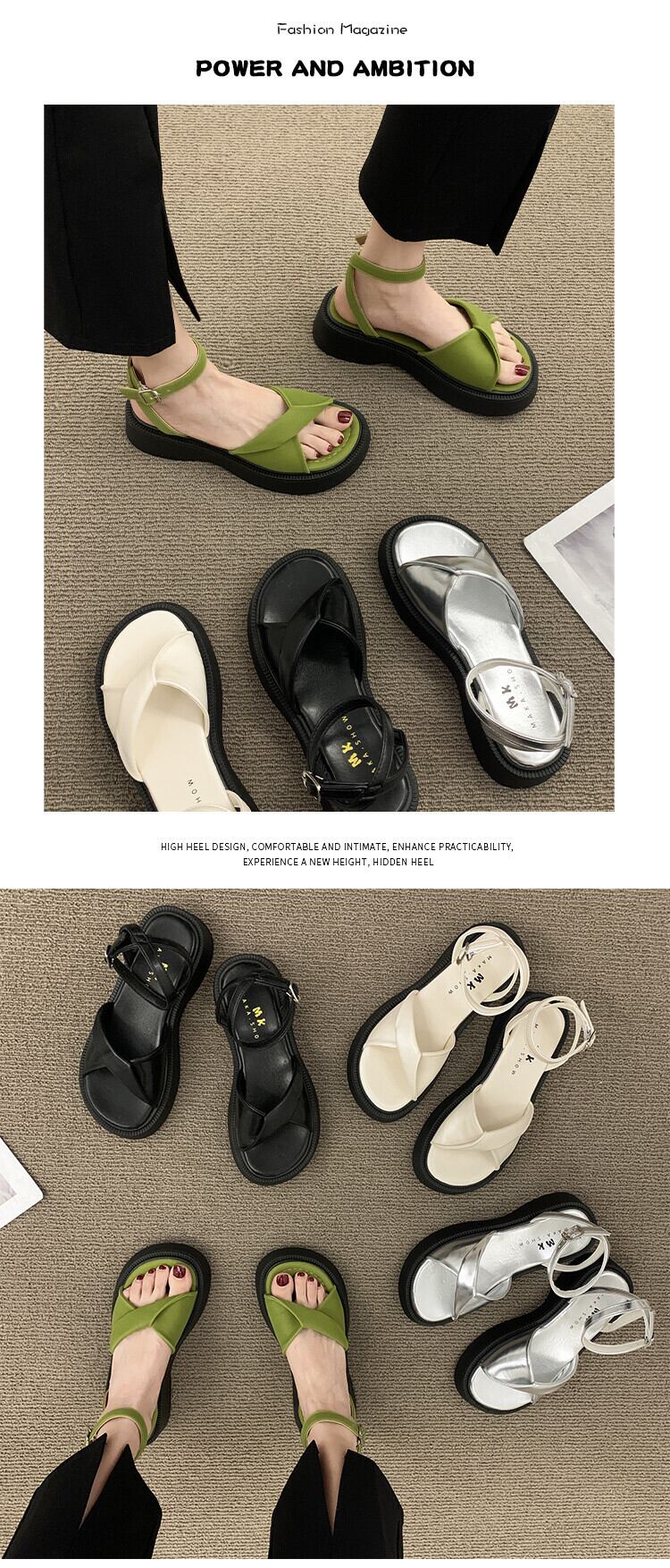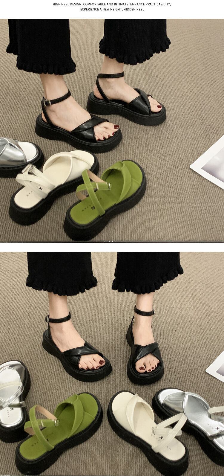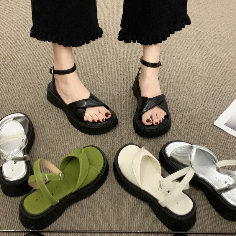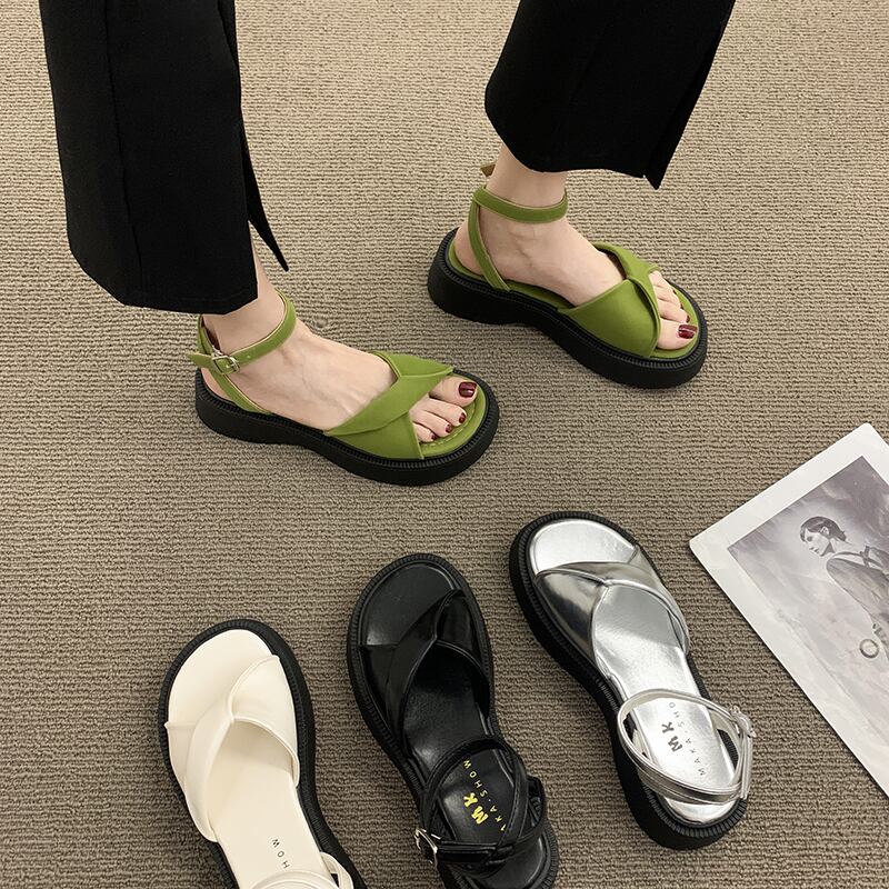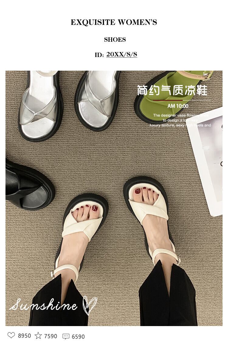 サンダル2022女性の新しい夏のファッションオールマッチシルバーレトロスポンジケーキ厚い底滑り止め一言ビーチシューズ潮 靴 サマー 夏物 スリッポン 銀 jxjxf48260269995