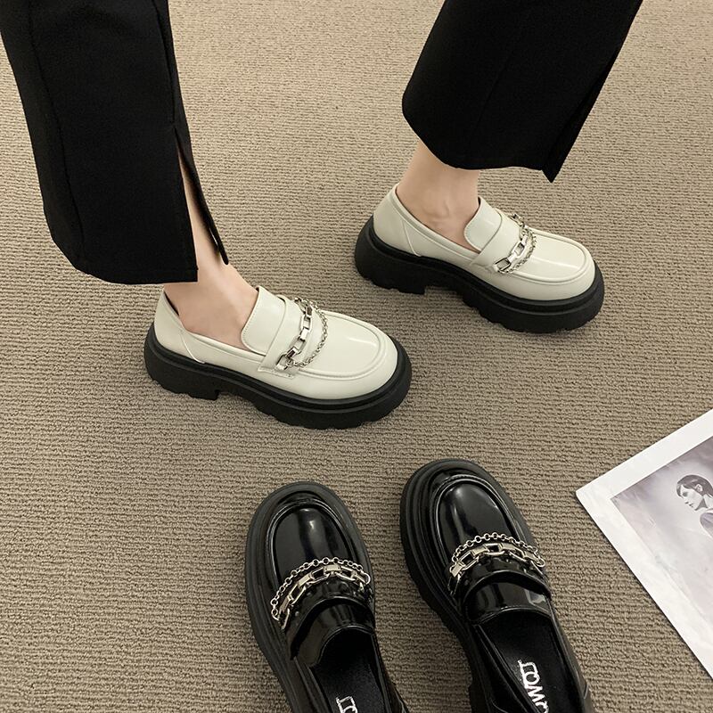 厚底ローファーレディース2022年夏の新しいレトロな英国スタイルのチェーンファッショントレンドesejk小さな革の靴 シューズ サマー 夏物 レザー jxjxf45384207793
