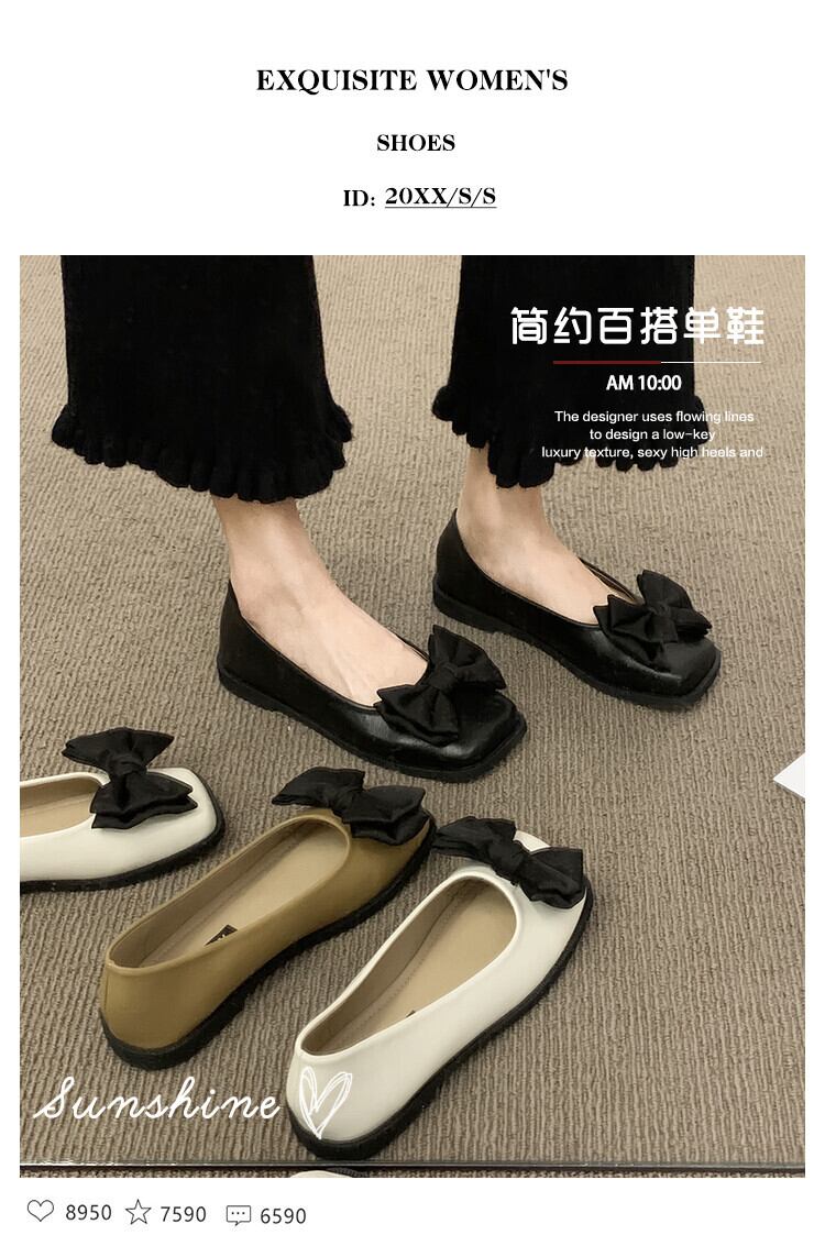 フラットシューズ女性の2022年の新しい夏フランスのレトロなニッチ弓おばあちゃんの靴浅い柔らかい底の豆の靴 リボン サマー 夏物 jxjxf5604279258