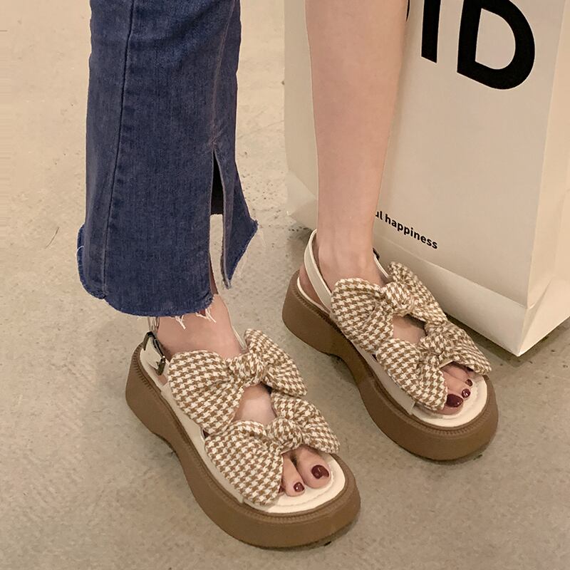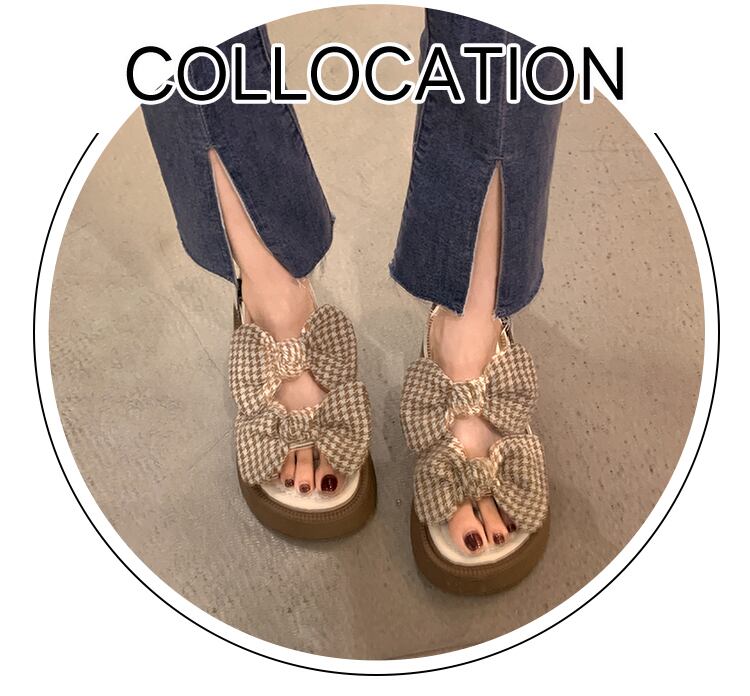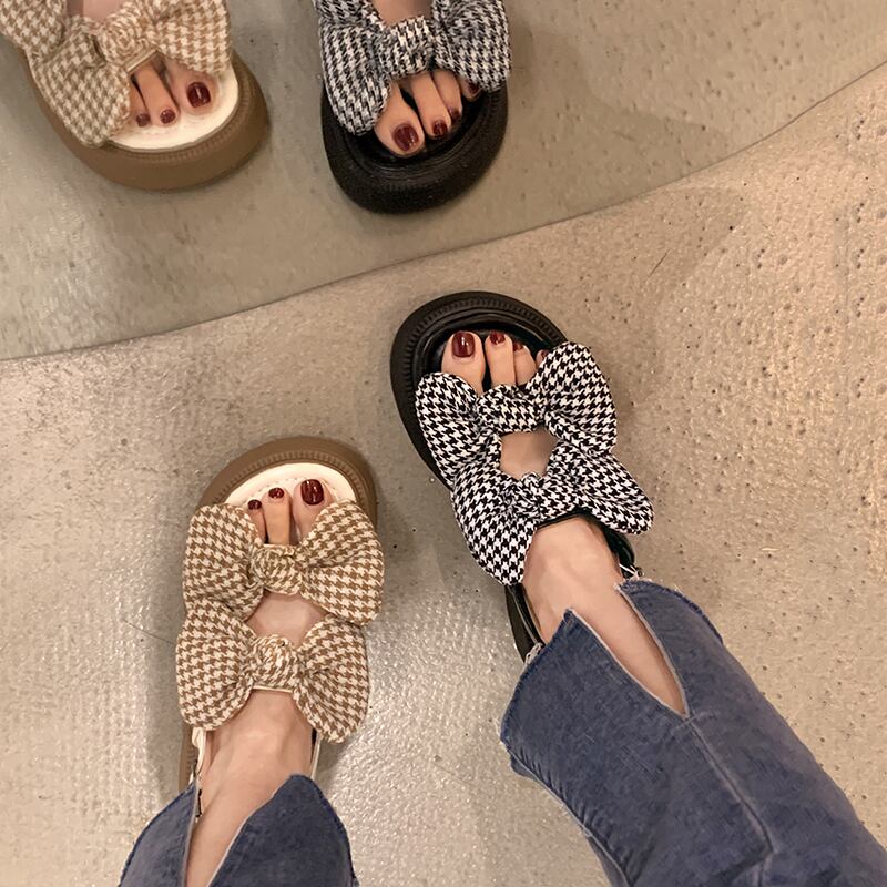 サンダル2022新しい夏のファッションオールマッチかわいい弓学生スポンジケーキ厚い底滑り止めビーチシューズ 靴 リボン 大人ガーリー スウィート キュート カジュアル サマー 夏物 jxjxf63335022895