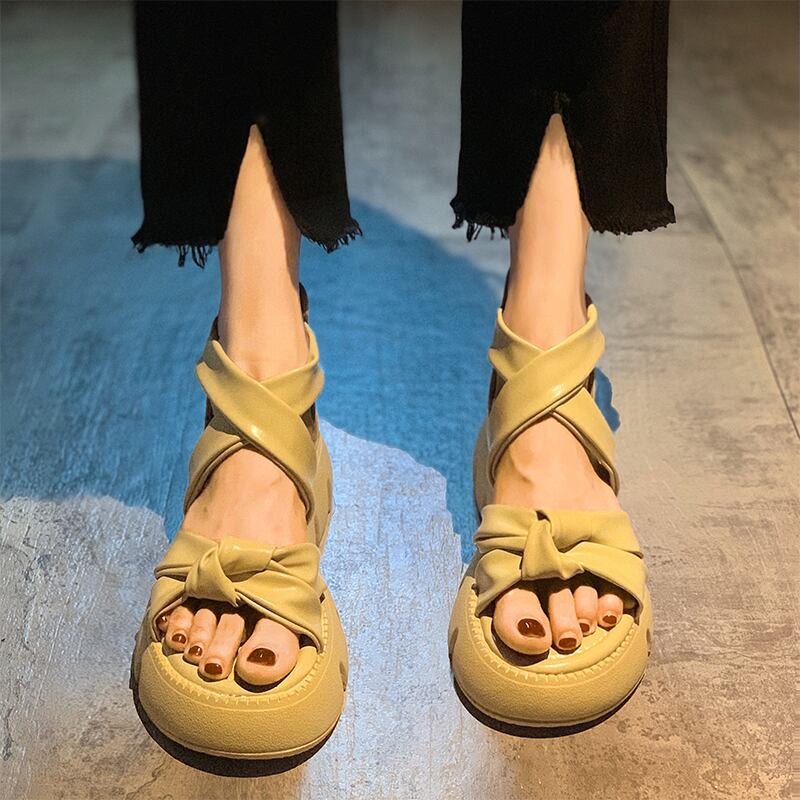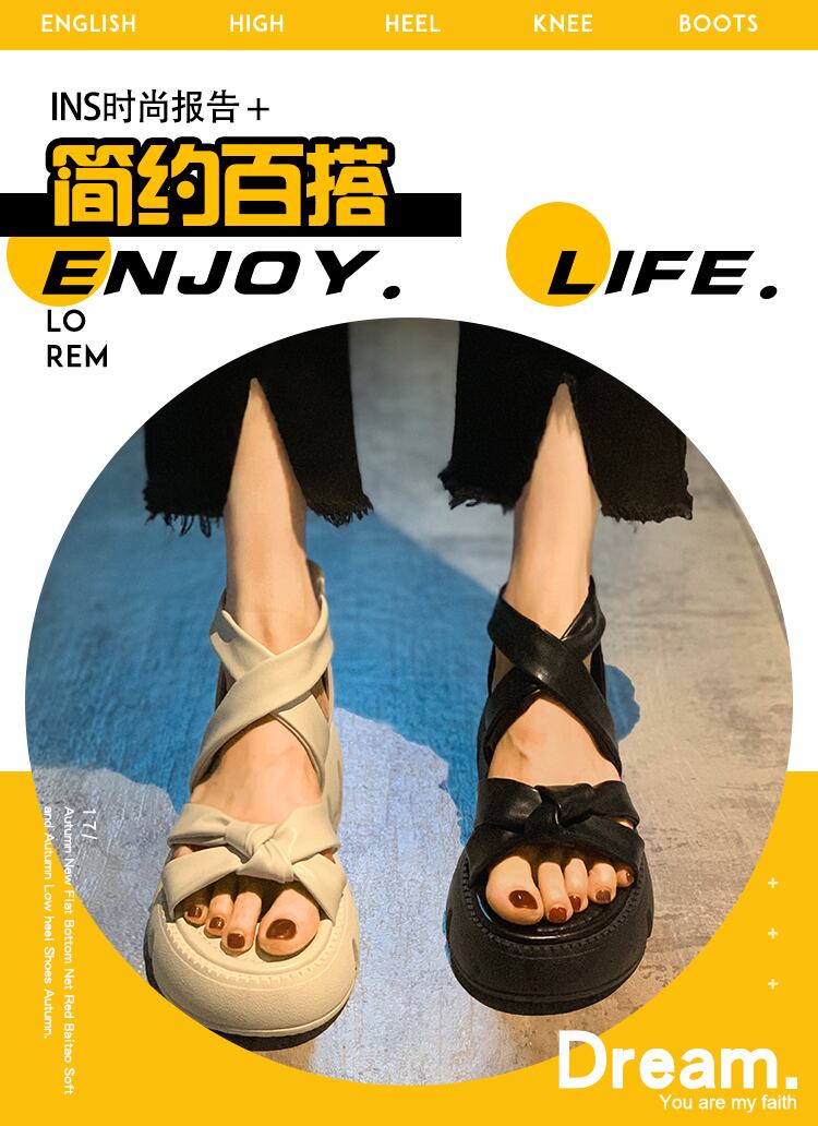 サンダルレディース2022新しいファッションオールマッチネットレッドクロス厚い底滑り止め小さなスポンジケーキローマのサンダル夏 靴 シューズ サマー 夏物 jxjxf21451473737