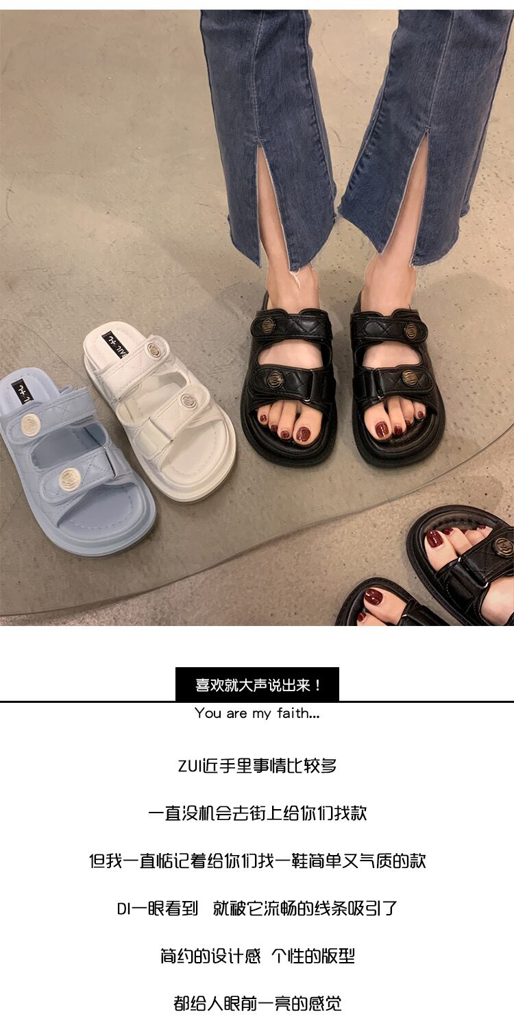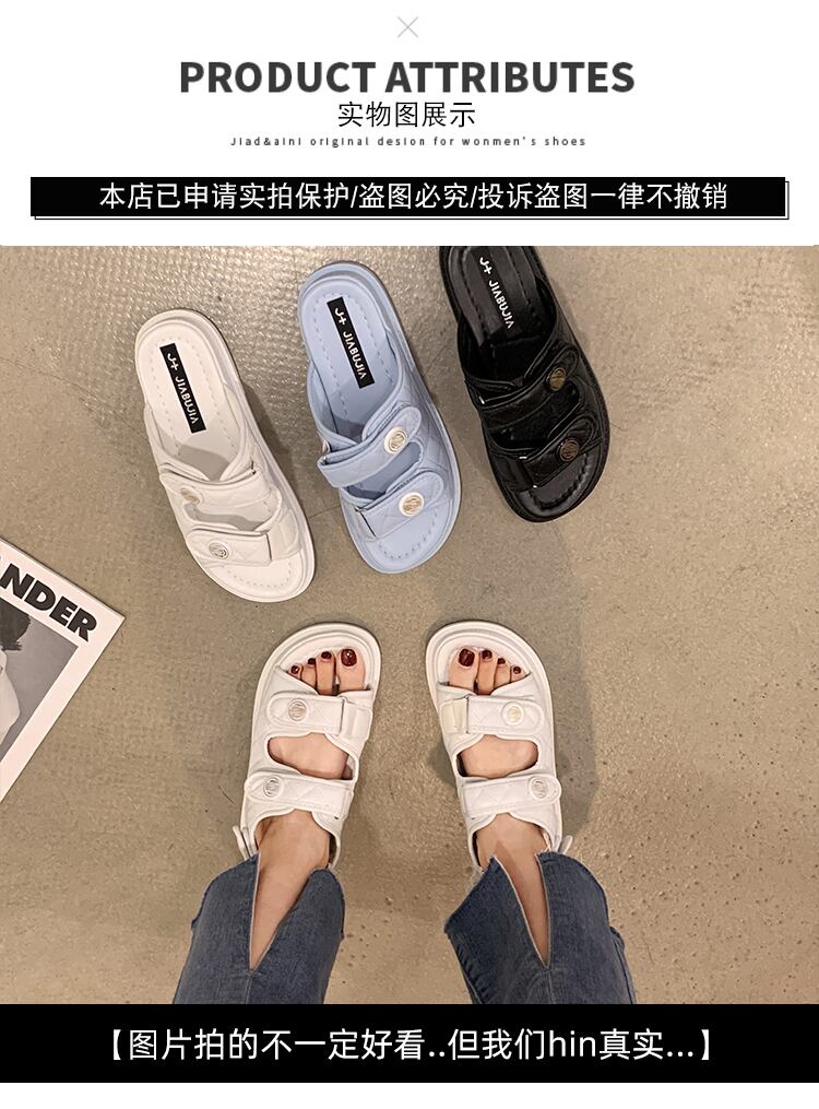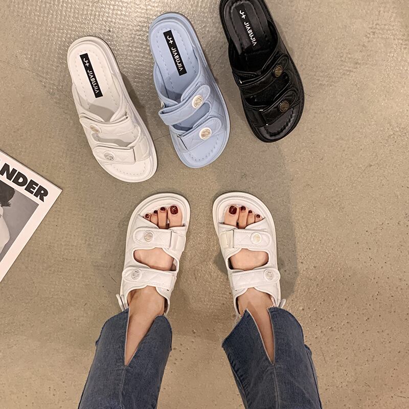 スリッパレディースサマーウェア2022新しいベルクロ厚底滑り止めファッションオールマッチ学生ビーチレジャー一言スリッパ ミュール 靴 シューズ 夏物 jxjxf52579416782