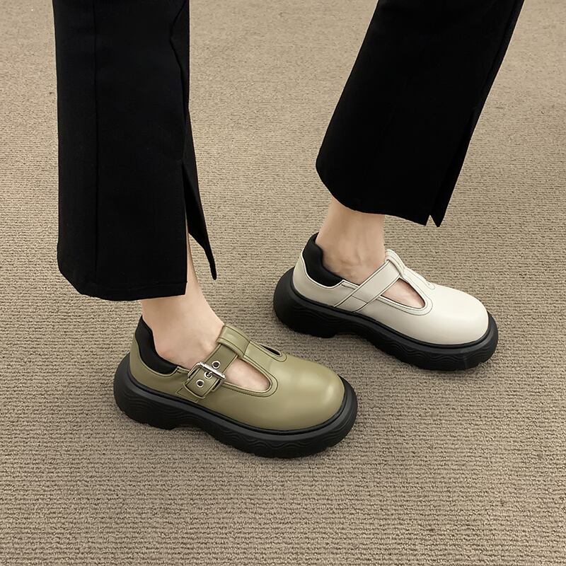シングルシューズレディースサマーモデル2022ニューファッションオールマッチレトロベルトバックル学生スポンジケーキ厚底滑り止めスモールレザーシューズ 靴 夏物 ハーネス jxjxf56524537602