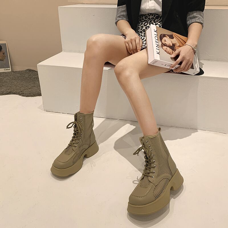 夏のブーツ女性の薄いメッシュブーツ2022新しいファッションオールマッチ通気性のある厚いヒール滑り止めショートチューブレトロクールブーツ 靴 シューズ サマー 夏物 jxjxf41510842421