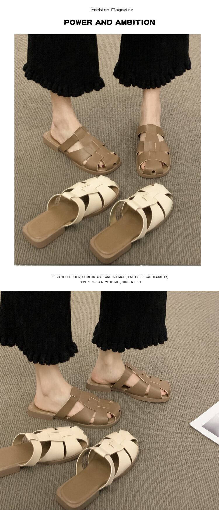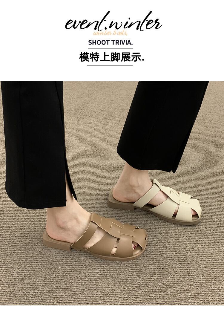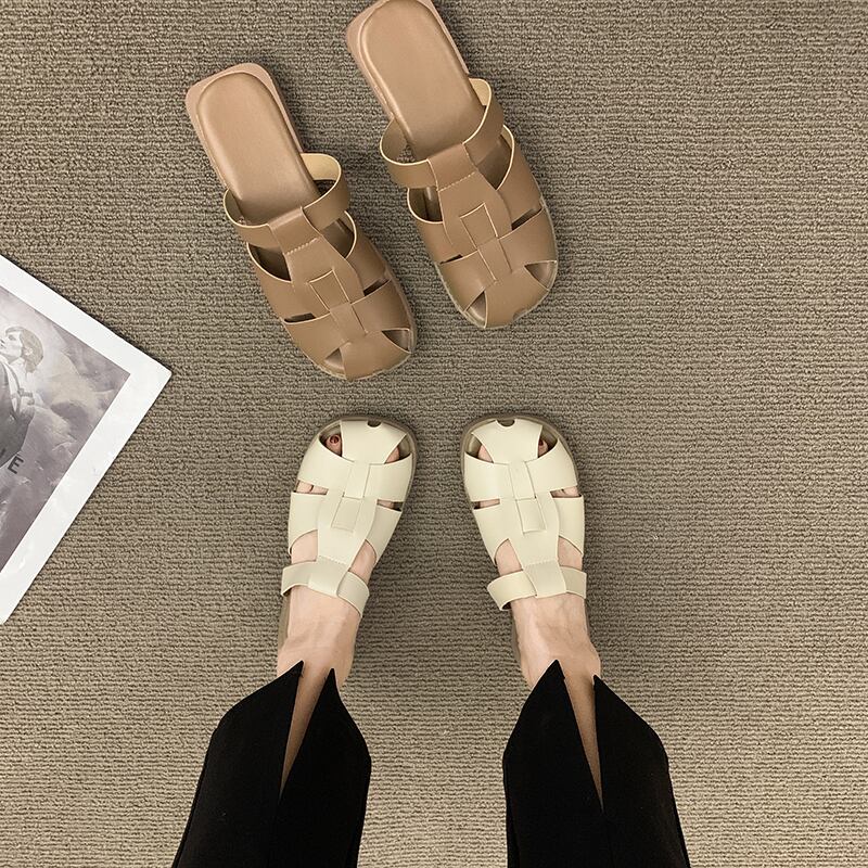 スリッパ女性の夏のアウターウェア包頭2022新しいスーパーオールマッチ優しい平底滑り止めレトロ織りサンダルとスリッパ ミュール 靴 シューズ サマー 夏物 jxjxf87462645353
