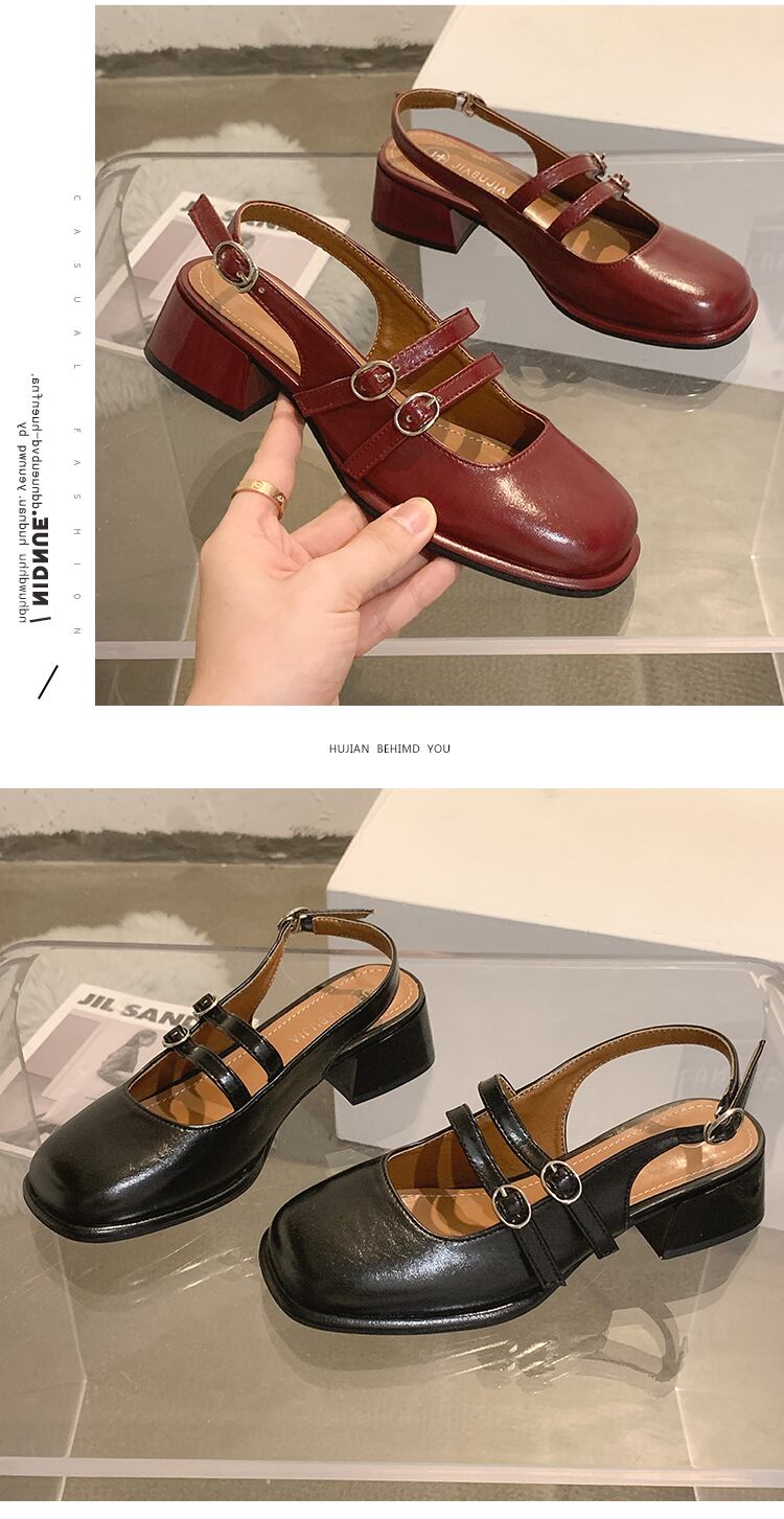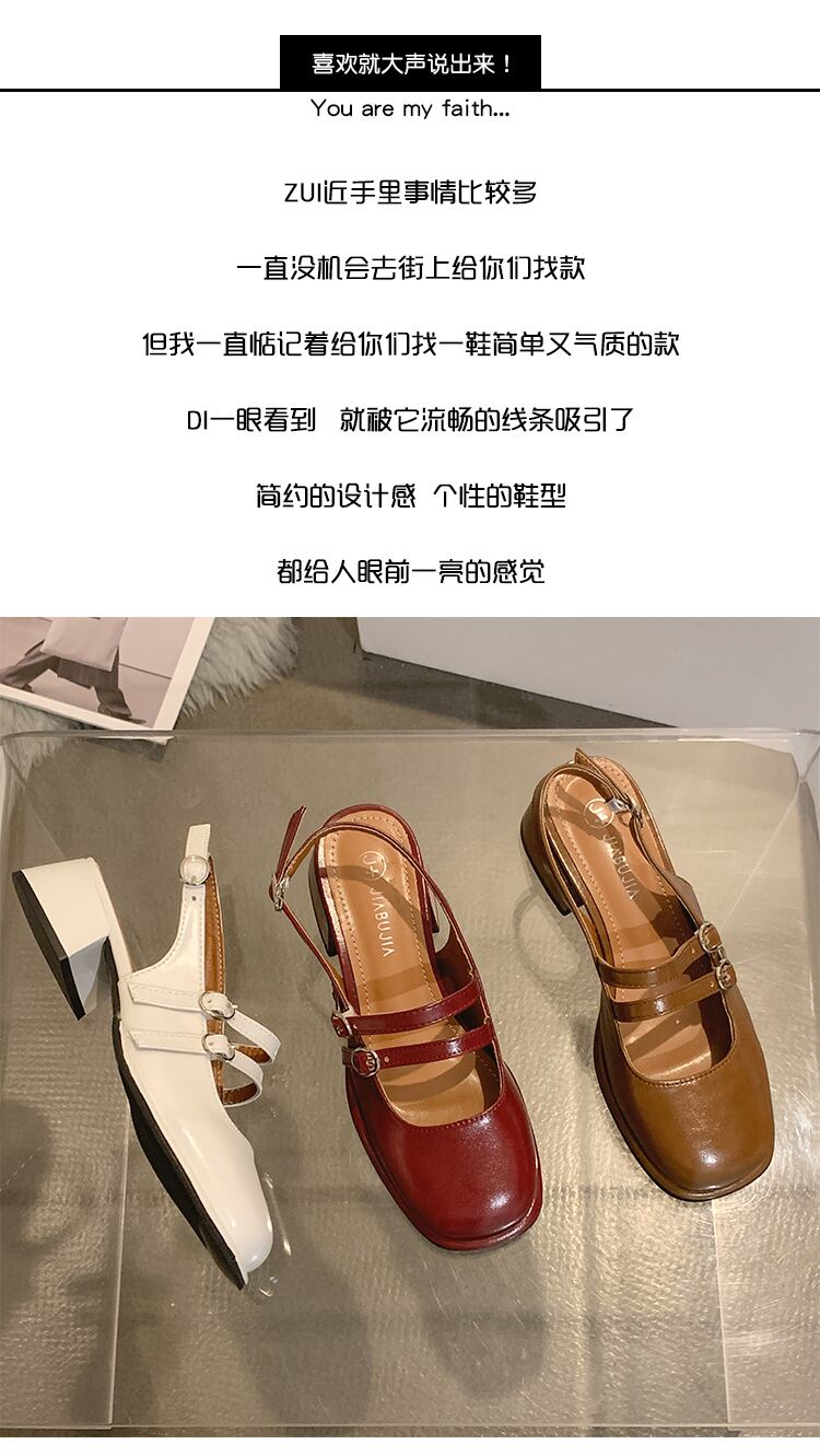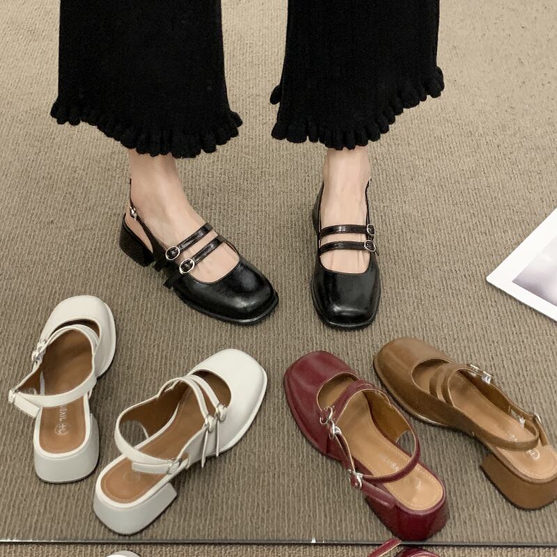 メリージェーンサンダルレディース2022年新夏バオトウベルトバックル厚手のヒールノンスリップファッションオールマッチレトロスモールレザーシューズ 靴 サマー 夏物 ハーネス jxjxf31271423736